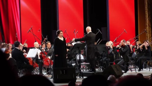 Национальный филармонический оркестр России под руководством народного артиста СССР Владимира Спивакова и народная артистка России Хибла Герзмава исполнили песни военных и послевоенных лет на сцене Ставропольского Дворца культуры и...