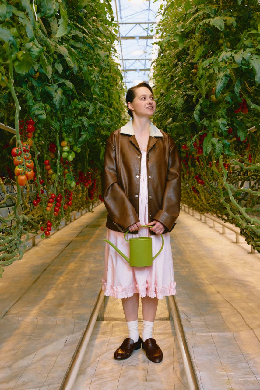 Снимали прямо в теплицах: вместо подиума – грядки, вместо софитов – солнечные лучи.