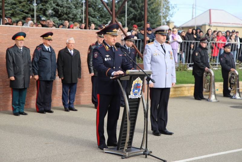 Генерал-майор полиции поздравил первокурсников со знаменательным событием, пожелал успехов в учебе и отметил, что служба в полиции требует стойкости, мужества и самоотдачи.