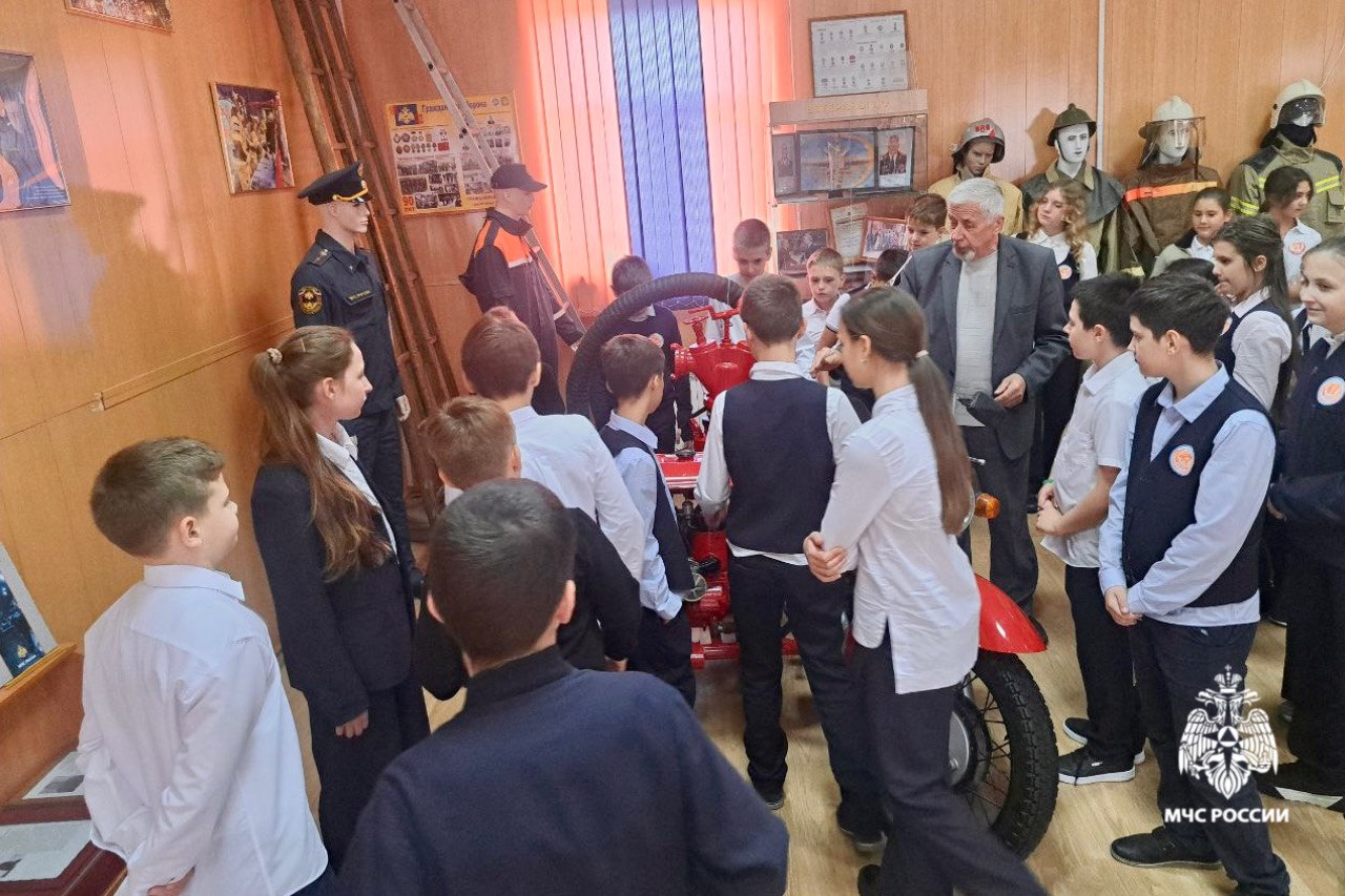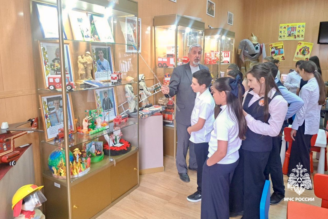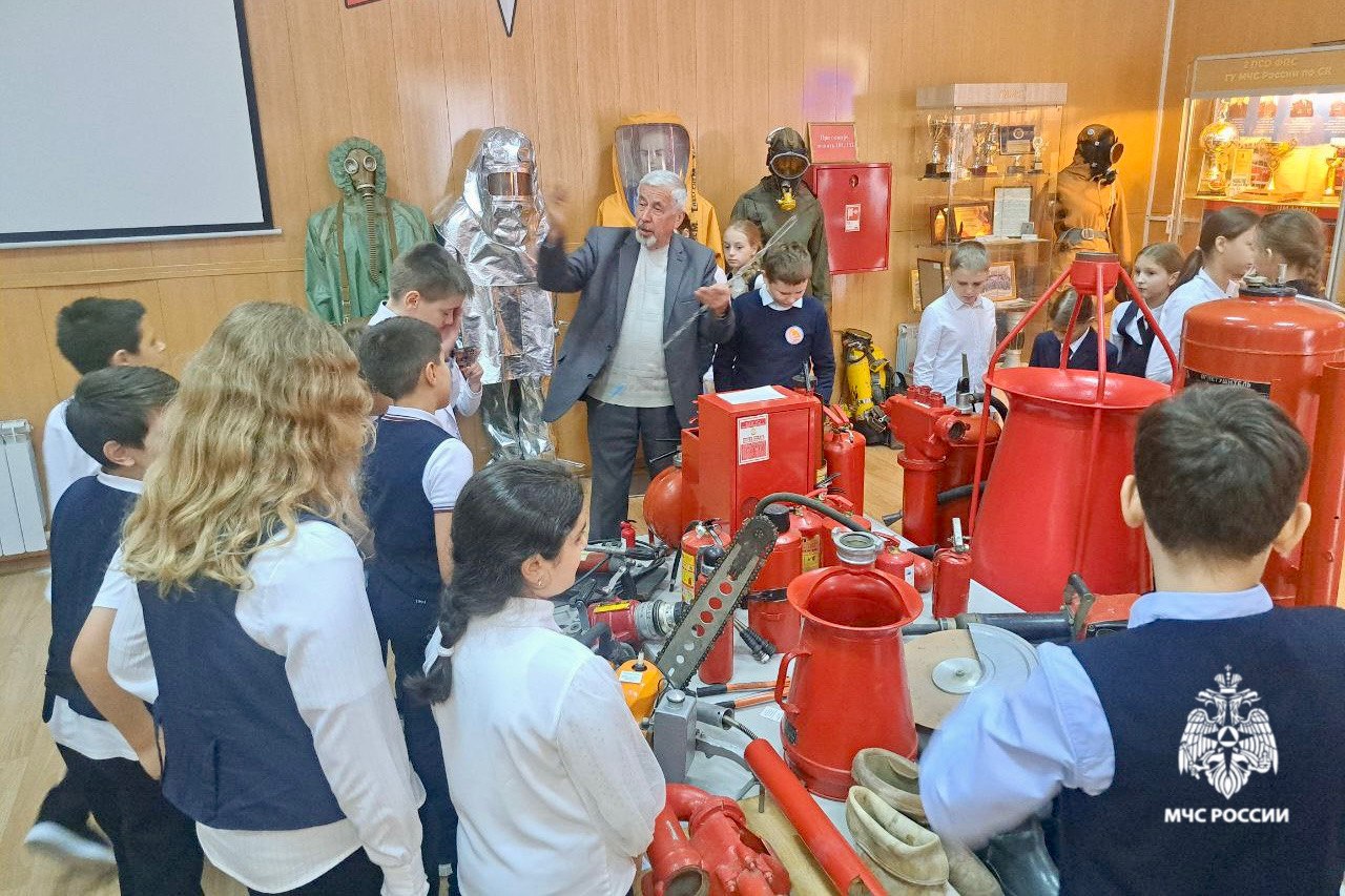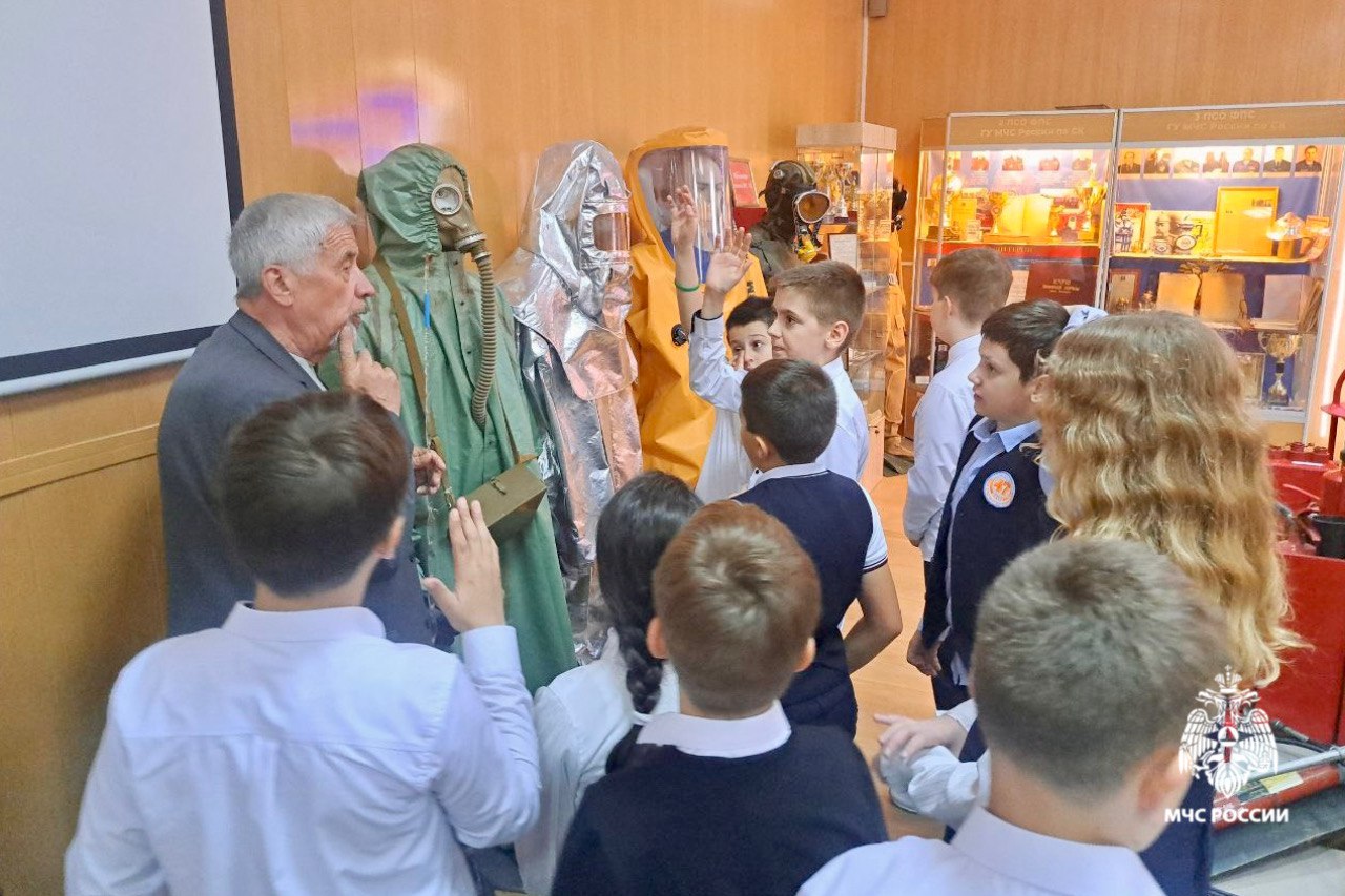 В Музее пожарной охраны для ребят и их классного руководителя провел захватывающую экскурсию Вячеслав Семенович Куркач, председатель совета ветеранов МЧС Ставрополья. Там они воочию смогли познакомиться с историей нашей службы в лицах и экспонатах.