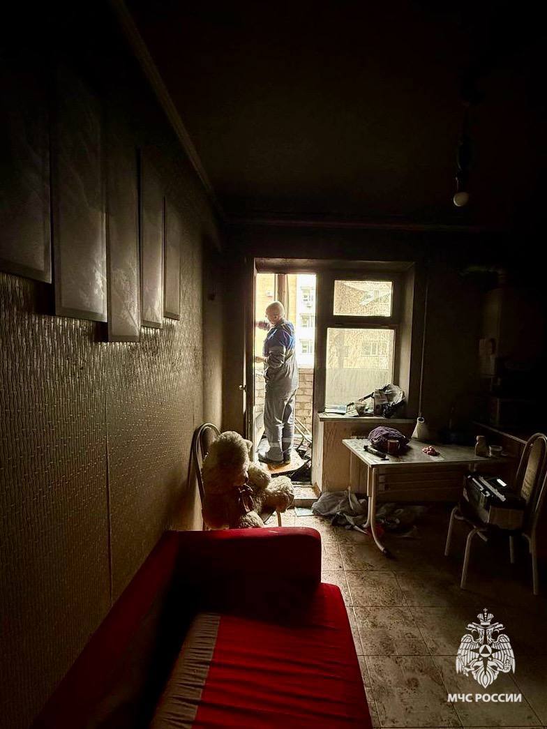 Предварительно, причиной возгорания могло стать тлеющее табачное изделие, попавшее в квартиру через окно. Дознаватель чрезвычайного ведомства проводит расследование.
