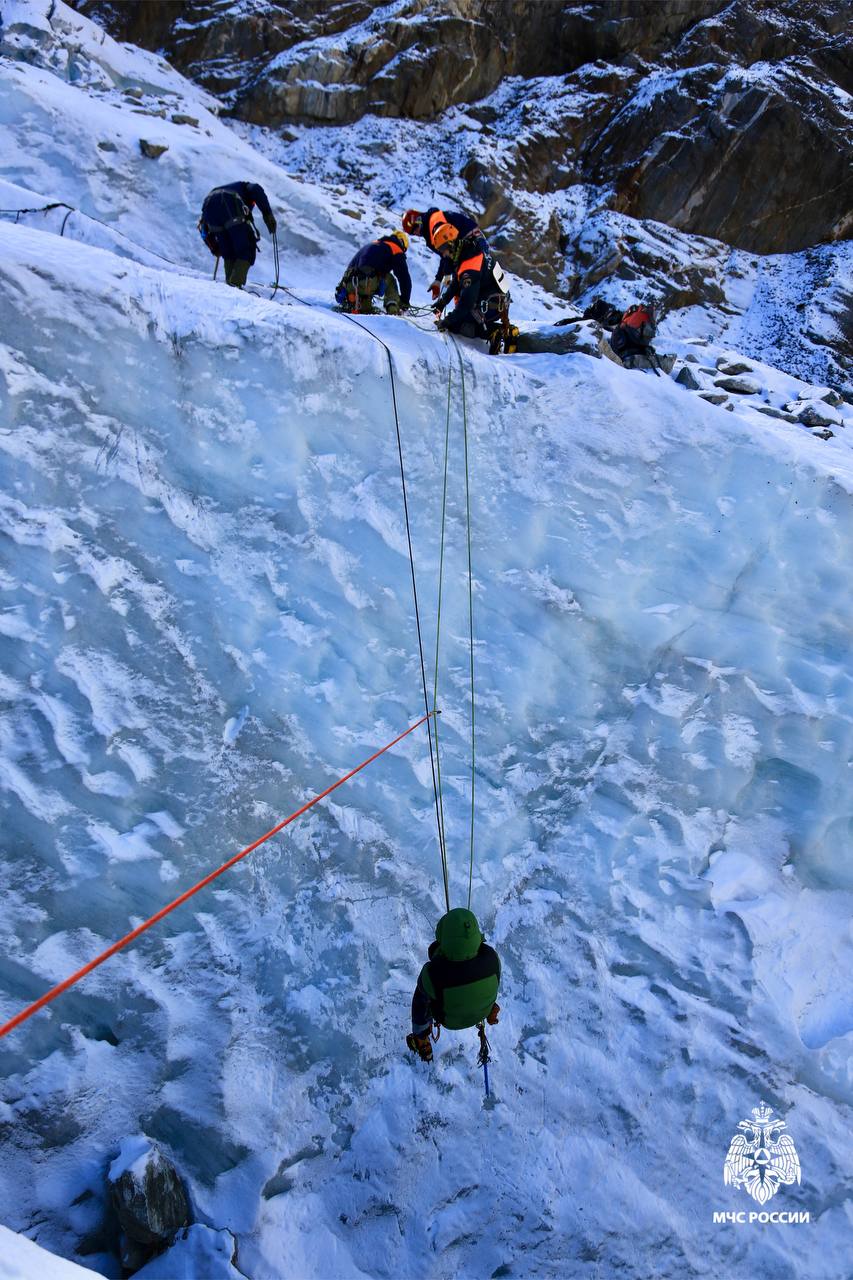 Около месяца сотрудники чрезвычайного ведомства оттачивали свои навыки спасения на горном кластере. Программа мероприятия была насыщенной: спасателям предстояло в различных погодных условиях и на сложном рельефе совершенствовать методы оказания первой помощи пострадавшим, а также пройти курс занятий по беспарашютному десантированию с борта вертолета Ми-8 на ледник.