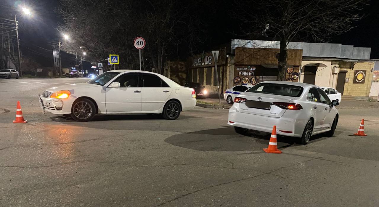 По предварительным данным, 21 ноября примерно в 21 час на ул. Фоменко города Кисловодска, водитель автомобиля Тойота Королла, на нарушение ПДД, выехал на полосу встречного движение и допустил столкновение с автомобилем Тойота Марк.
