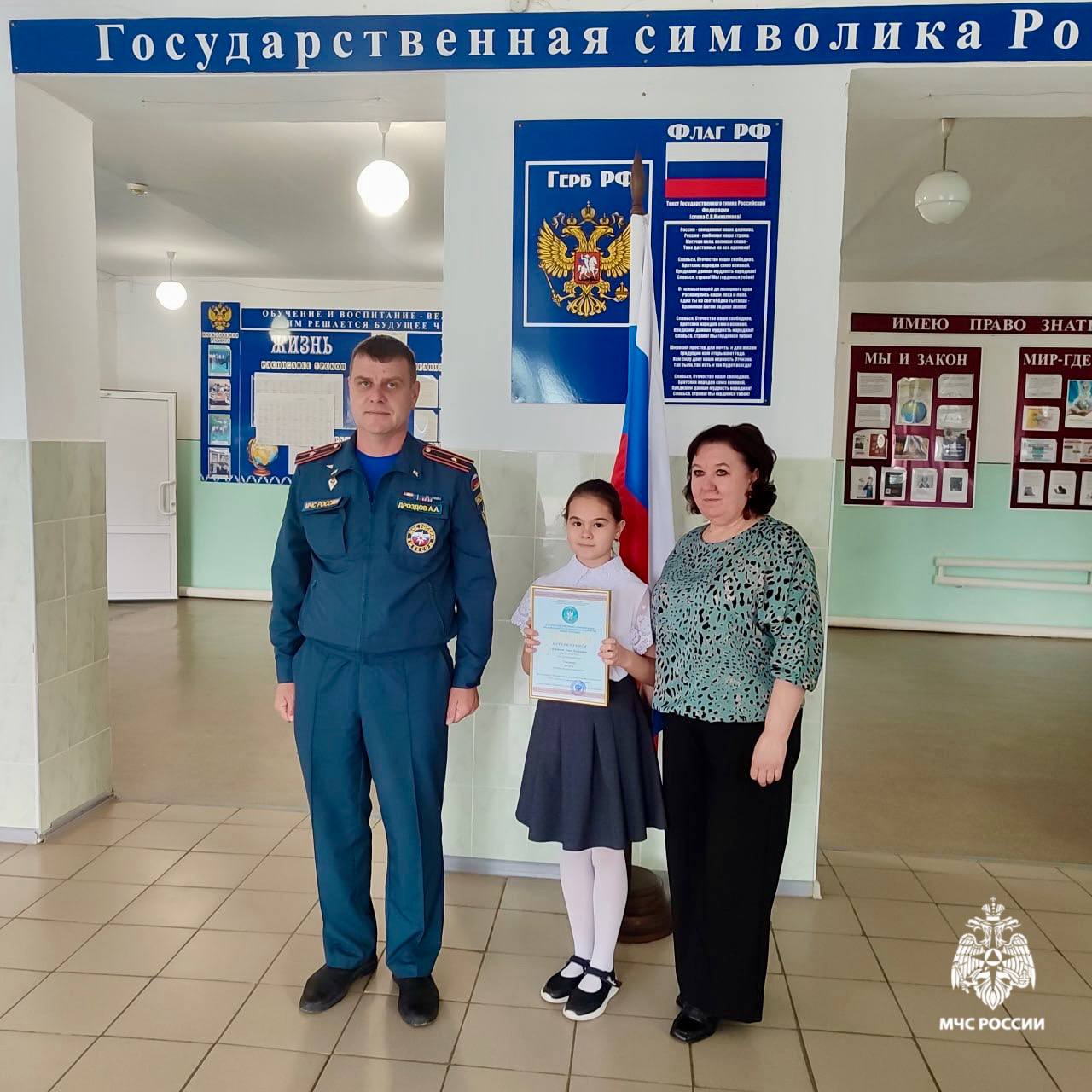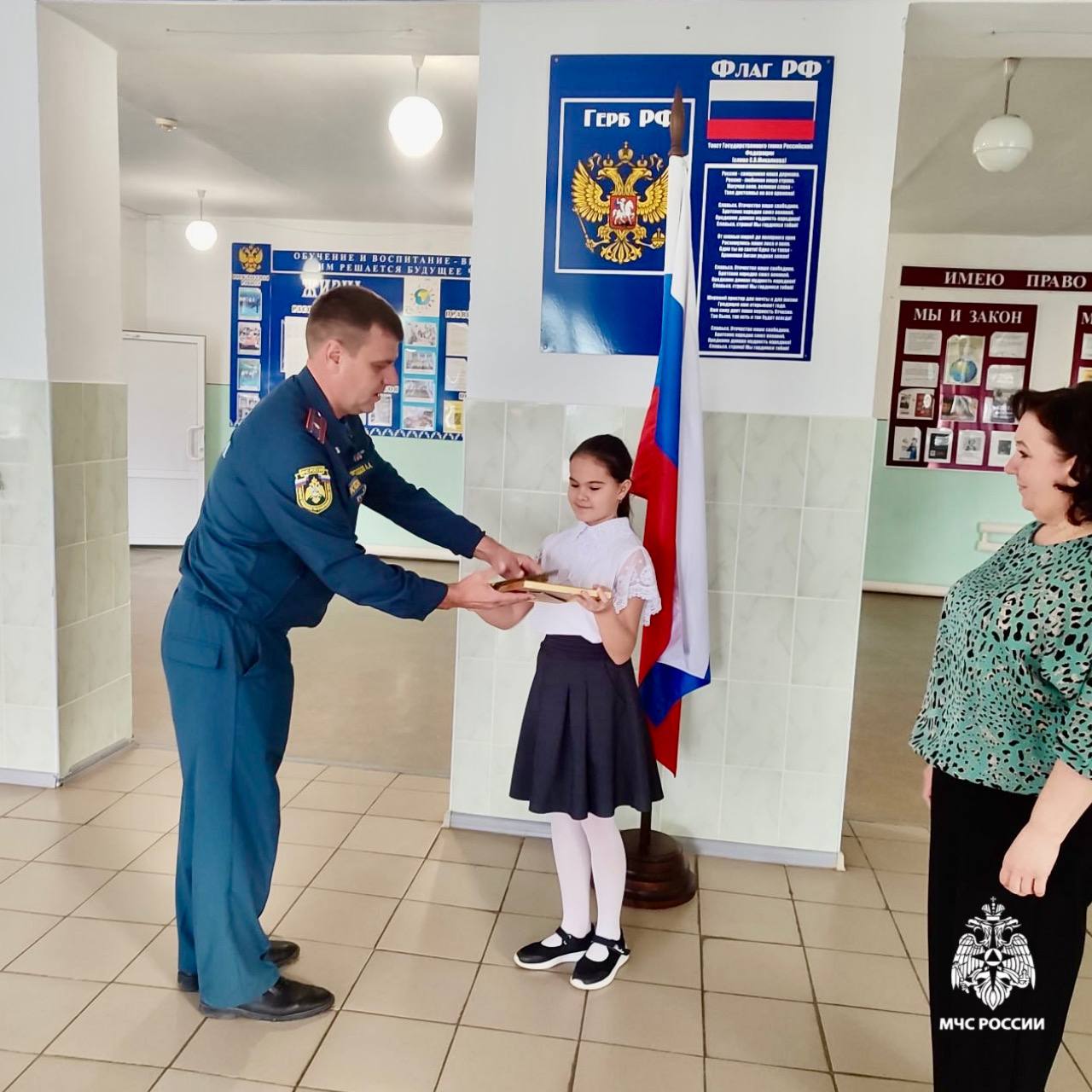 Однако визит специалистов чрезвычайного ведомства к школьникам был не простой. В завершении мероприятия состоялось приятное событие для одной из учениц.