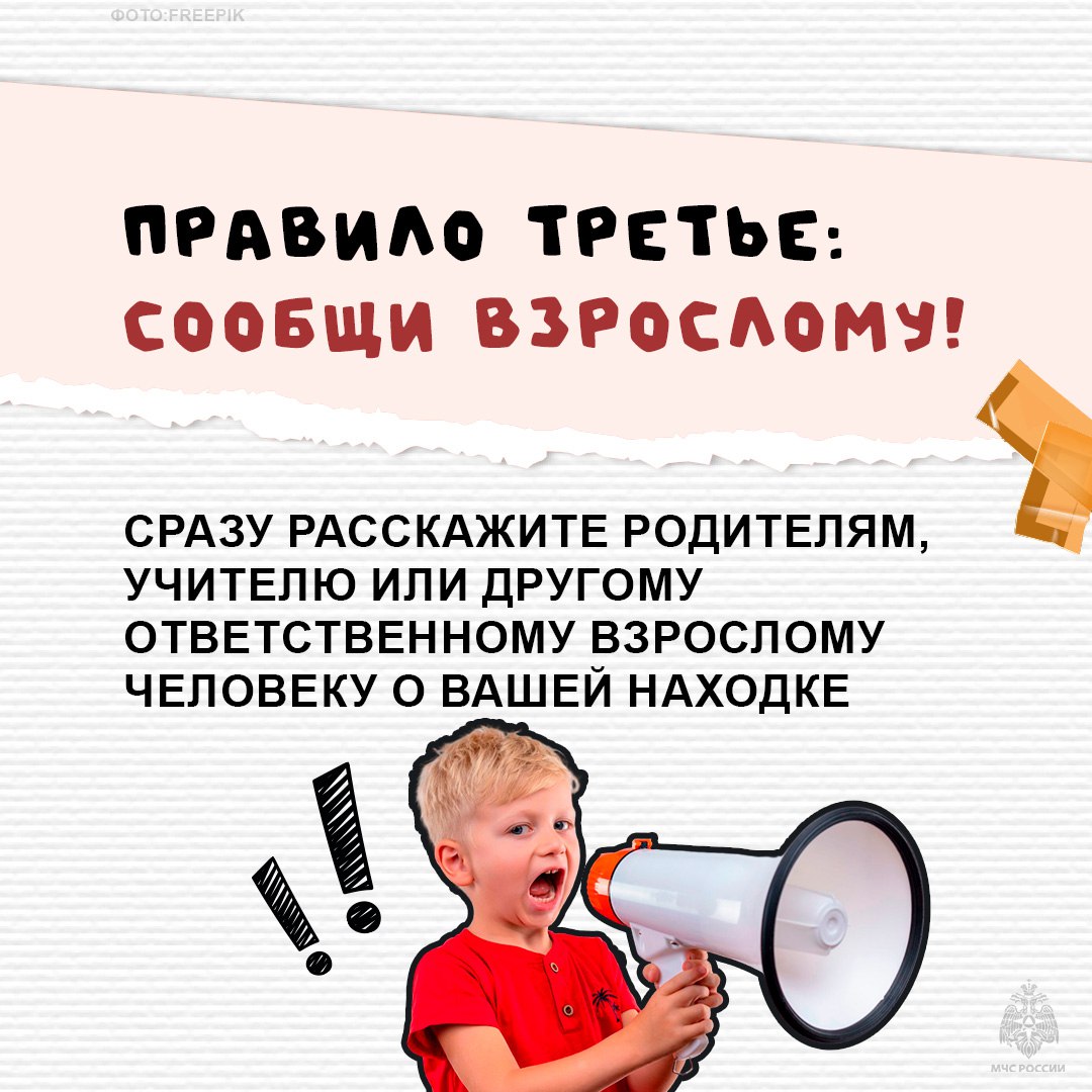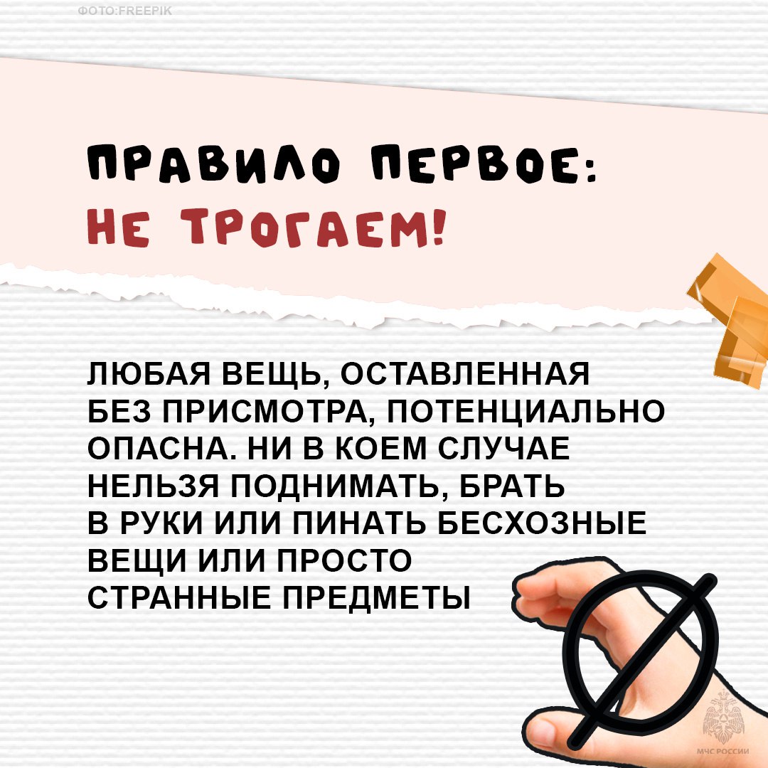 Напоминаем золотое правило безопасности: если ты или твой ребенок нашел что-то подозрительное, незнакомое, бесхозное – НИКОГДА не трогай это!