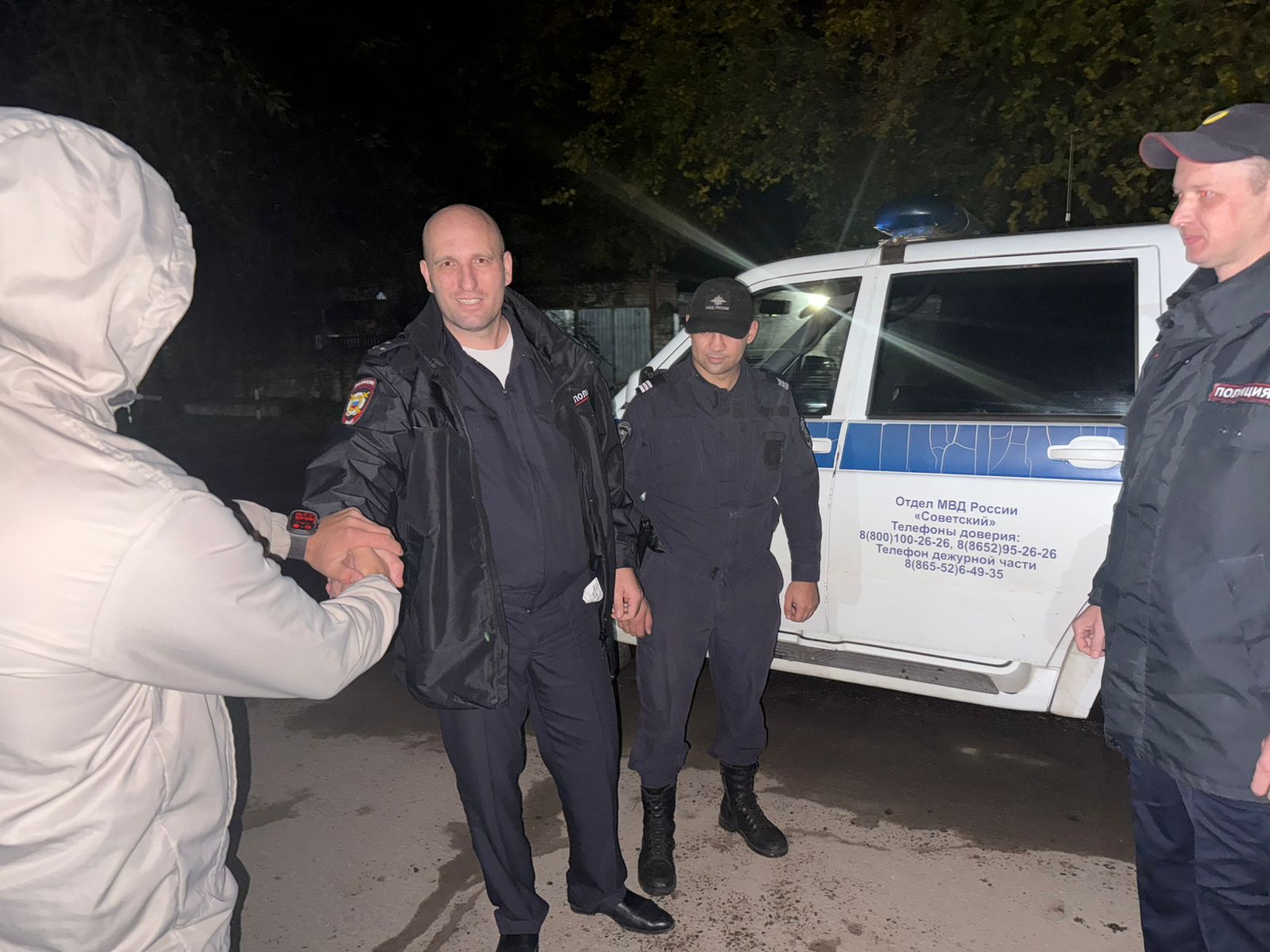 На горячую линию ГУ МВД России по Ставропольскому краю поступил звонок от мужчины, который выразил свою признательность сотрудникам ОМВД России «Советский» Руслану Рясному, Игорю Толстокорому и Абдулкериму Мамедову.