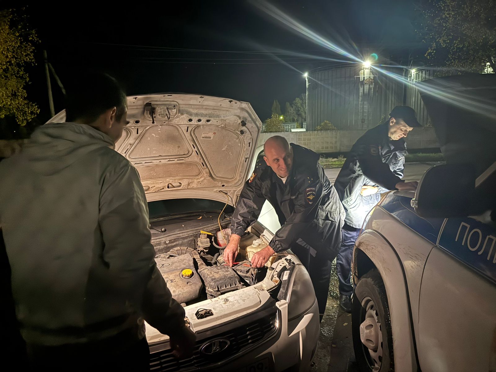 Полицейские возвращались с вызова и, заметив на обочине пустой ночной трассы автомашину, не остались равнодушными. Они оперативно выяснили причину поломки и помогли запустить двигатель легковушки. После этого сотрудники указали водителю ближайшую станцию технического обслуживания и предоставили все необходимые контактные данные.
