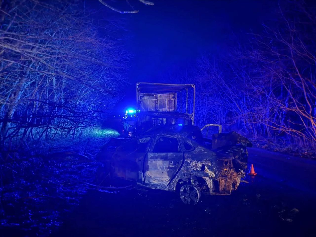 По предварительным данным, 21 декабря примерно в 17 часов 15 минут, на 5 км. автодороги: «Ставрополь - Новомарьевская - Каменобродская", водитель легкового автомобиля Хендай Элантра проявил невнимание к дорожной обстановке, не справился с управлением, допустил выезд на полосу встречного движения, где произошло столкновение с грузовым автомобилем ГАЗ и последующее возгорание обоих транспортных средств.