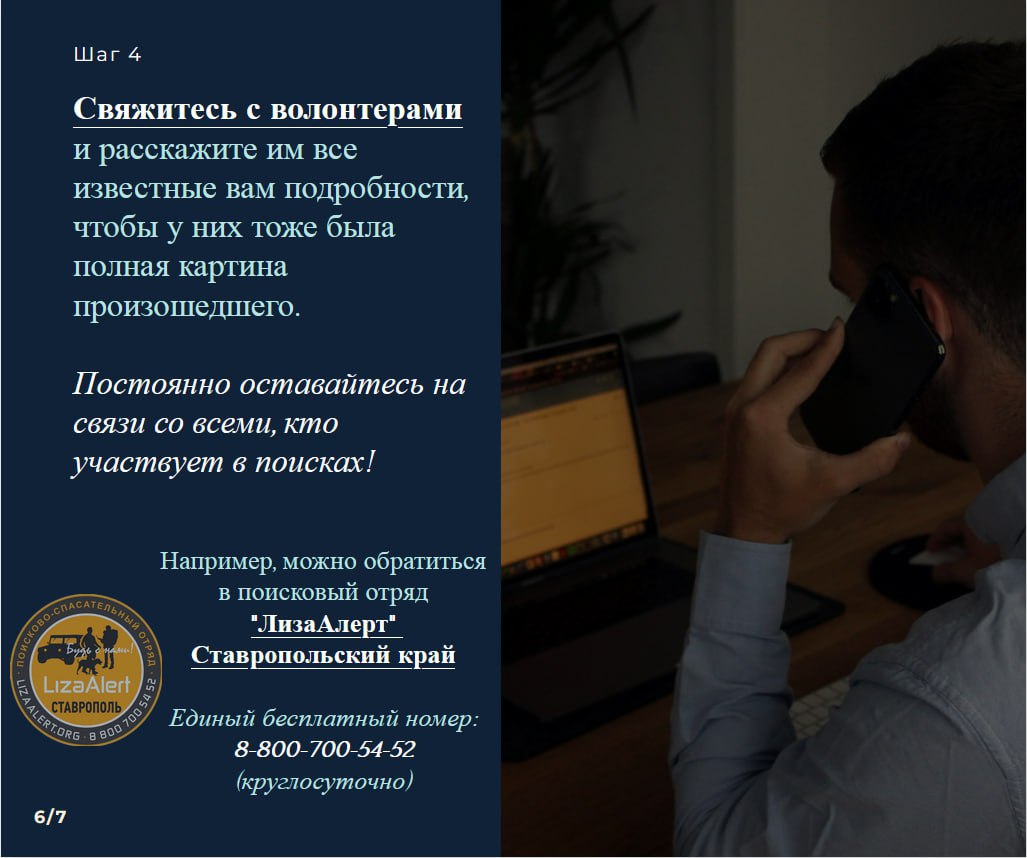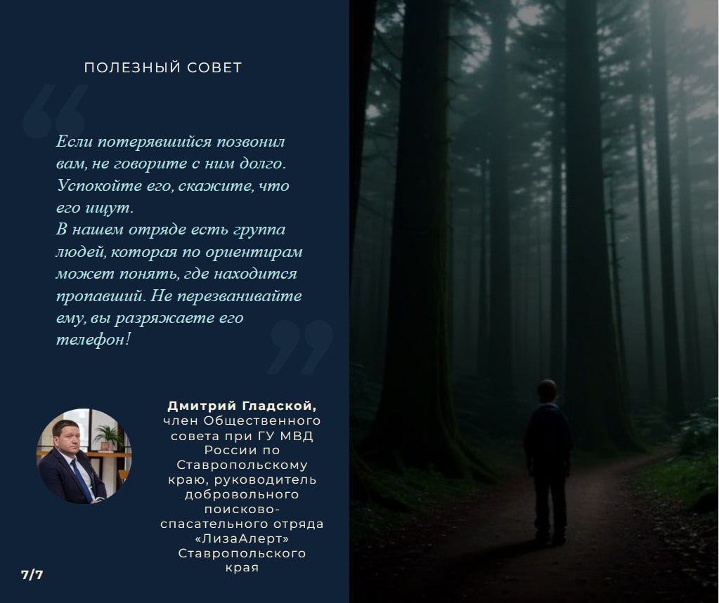 Публикуем для вас информационные карточки-инструкции, созданные полицией Ставрополья совместно с Общественным советом при ГУ МВД России по Ставропольскому краю и поисково-спасательным отрядом «Лиза Алерт».