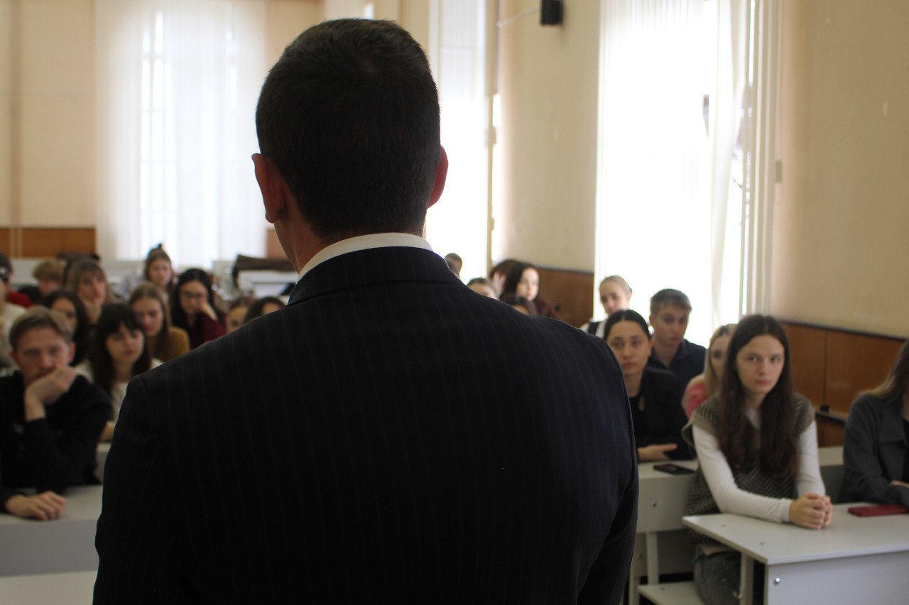 Встреча прошла в лекционной аудитории Северо-Кавказского федерального университета, в ней приняли участие около 100 студентов Департамента медиакоммуникаций.