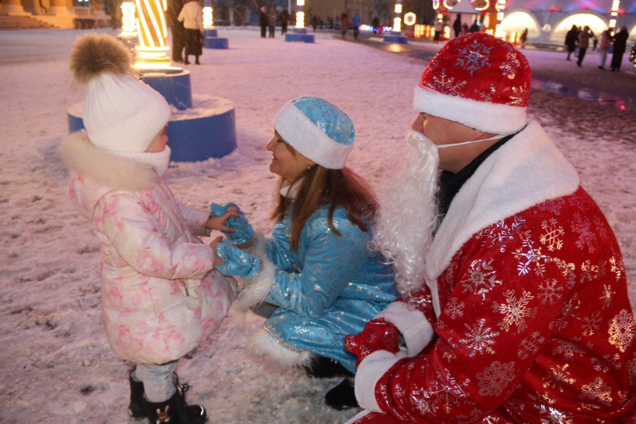 Новогодние поздравления в этот день получили и жители города. На центральной площади Ставрополя Дед Мороз и Снегурочка порадовали детей и взрослых: мальчишки и девчонки рассказывали стихотворения, пели песни и с радостью принимали подарки.