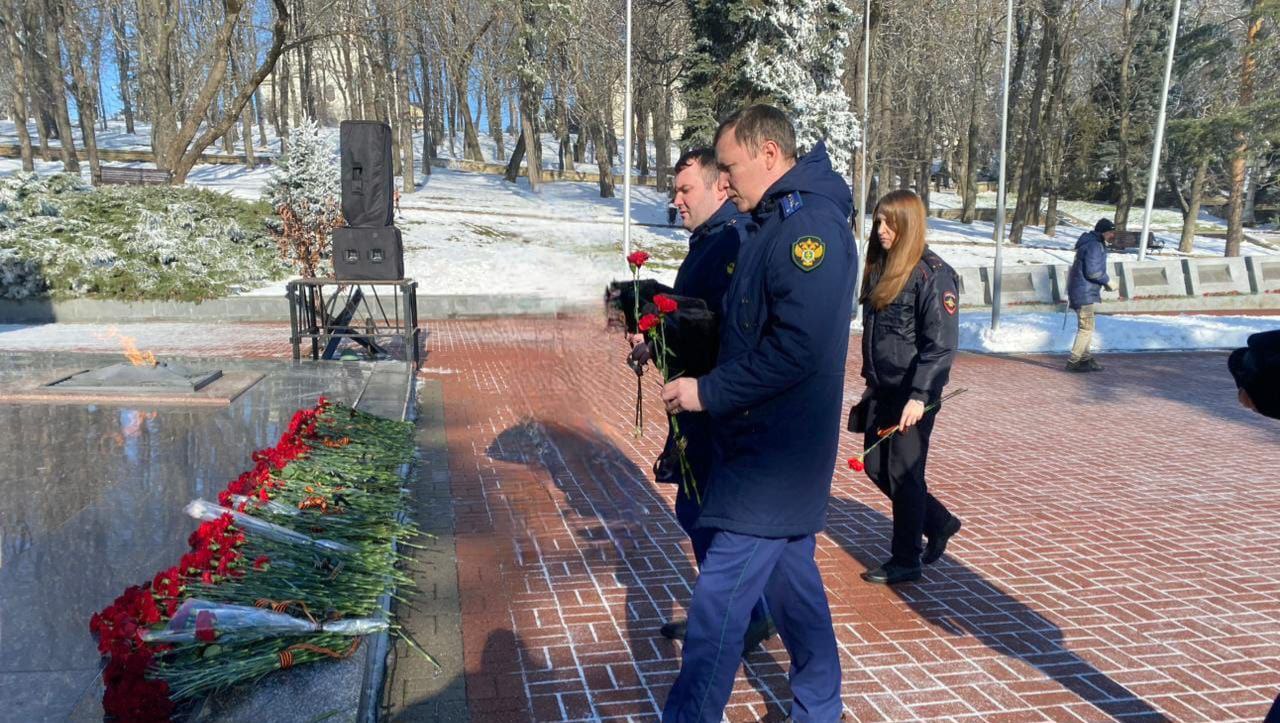 Работники Ставропольской транспортной прокуратуры почтили память всех героев, кто не вернулся с войны, возложили цветы к мемориалу «Вечной Славы».