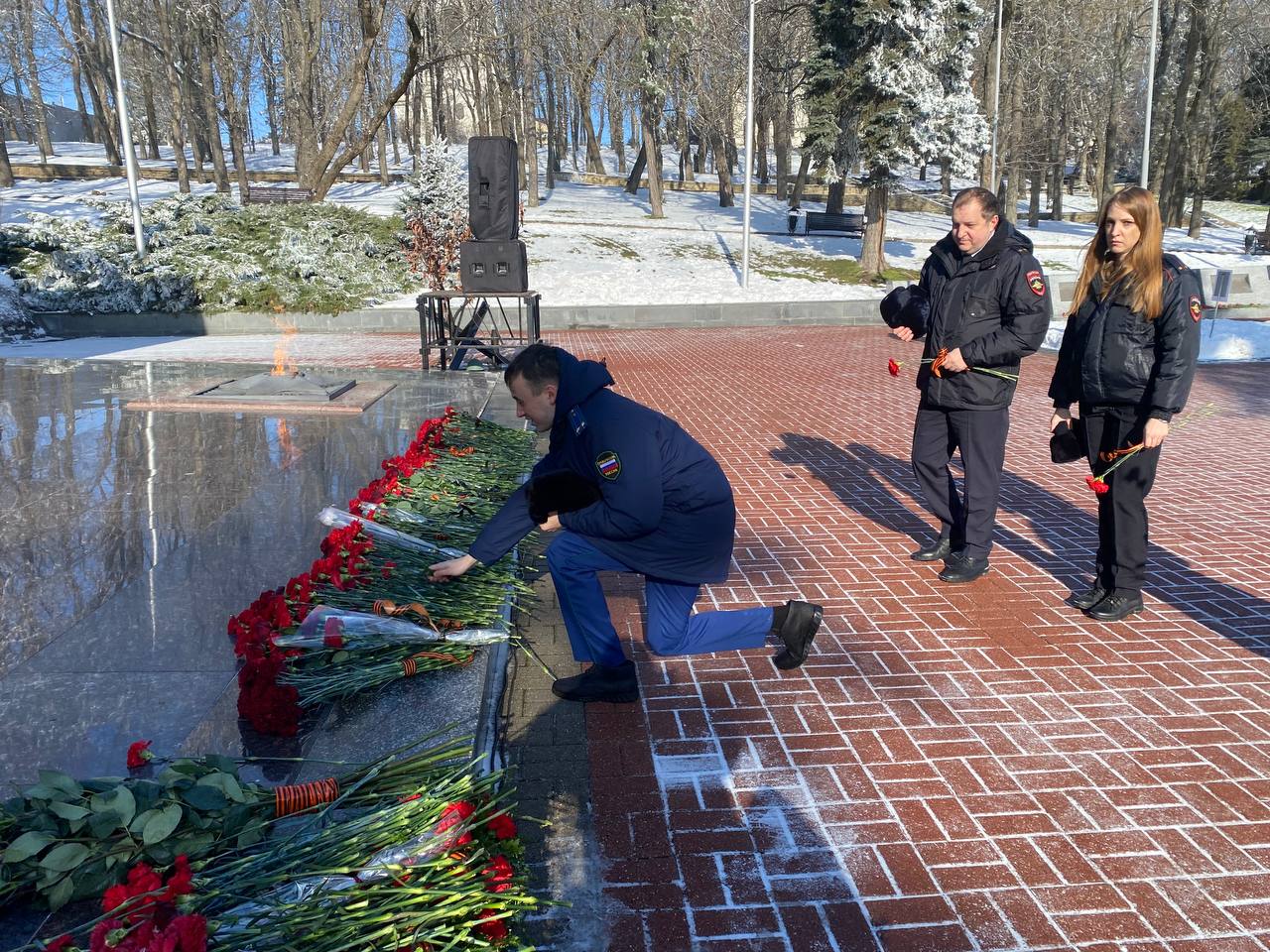 Сотрудники Ставропольского линейного отдела МВД России на транспорте совместно с представителями Ставропольской транспортной прокуратуры приняли участие в памятных мероприятиях на Крепостной горе у мемориала «Огонь Вечной Славы». Они собрались, чтобы почтить память героев, освободивших город в суровом январе 1943 года.