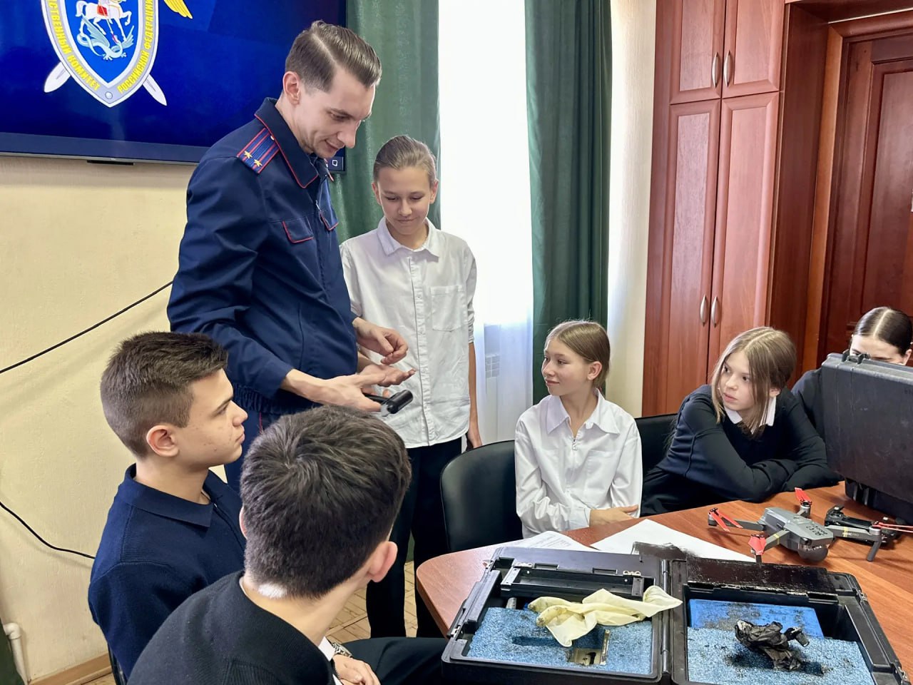 В ходе мероприятия перед юными гостями выступили сотрудники следственного управления, которые предложили ребятам погрузиться в рабочий день сотрудника следственного управления и представить себя в профессии следователя и следователя-криминалиста.