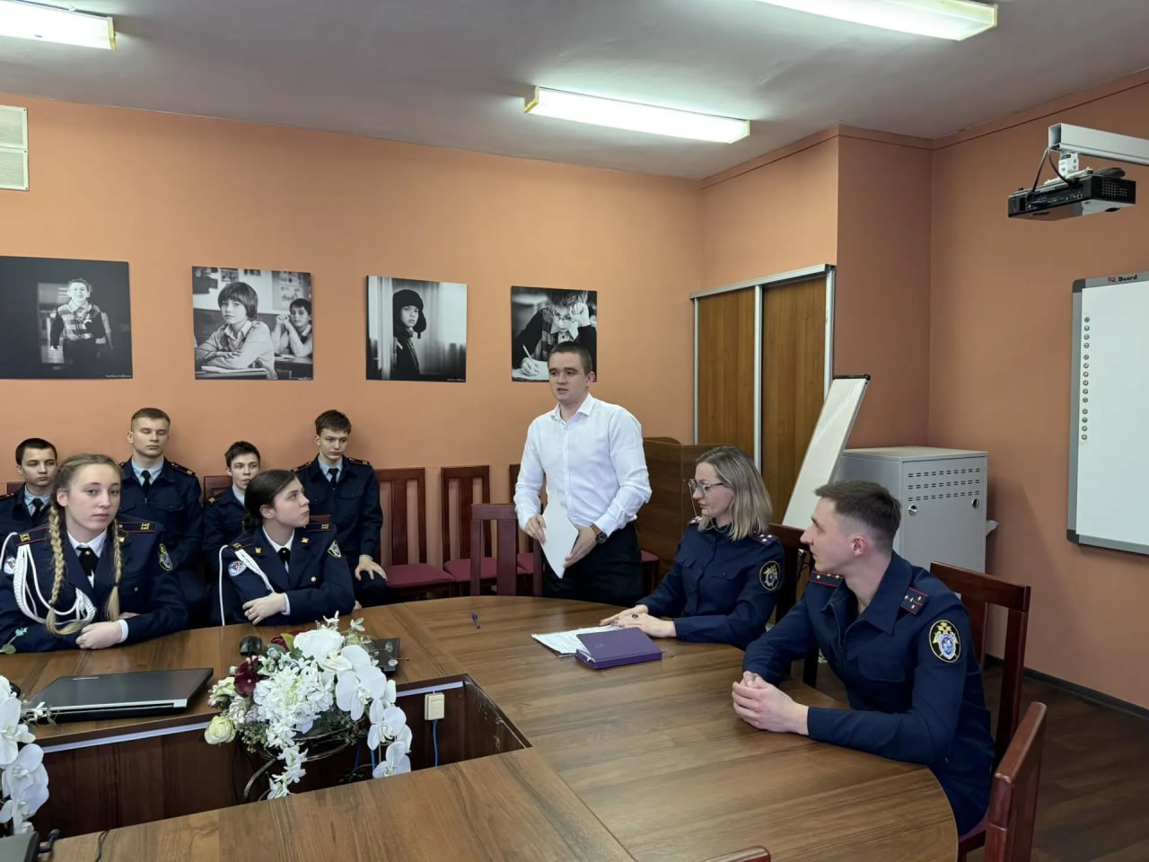 Открывая встречу, старший помощник руководителя следственного управления (по общественно-политической работе) Людмила Артамонова поздравила кадет с праздником, подчеркнув значимость их выбора в пользу служения закону и Отечеству.