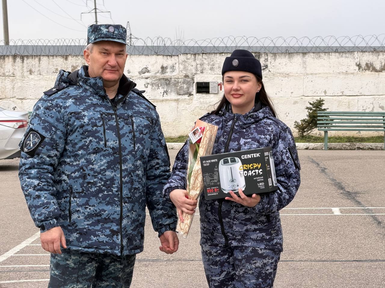 В преддверии весеннего праздника состоялось торжественное построение личного состава. Заместитель начальника краевого Главка Александр Степанов пожелал сотрудницам всегда сохранять баланс между службой, требующей силы и выдержки, и теплом домашнего уюта.