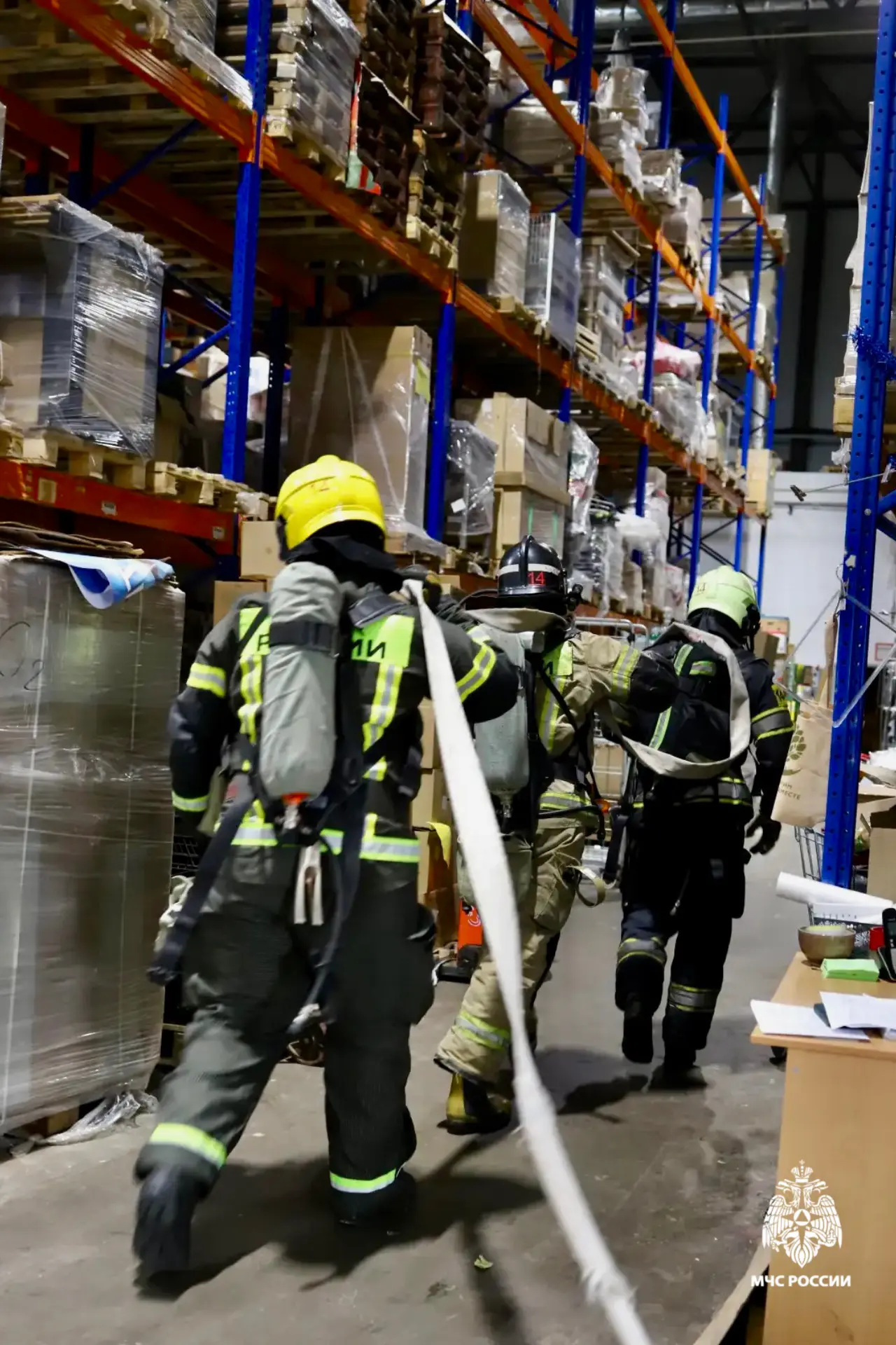 В первые минуты была проведена разведка: установлено, что очаг возгорания локализован в складском помещении, где хранились непродовольственные товары.