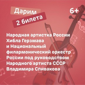 В таких случаях мы заново разыгрываем билеты — и сейчас мы вновь предлагаем вам попасть на концерт Народной артистки России Хиблы Герзмавы и Национального филармонического оркестра России под руководством Народного артиста СССР Владимира Спивакова...