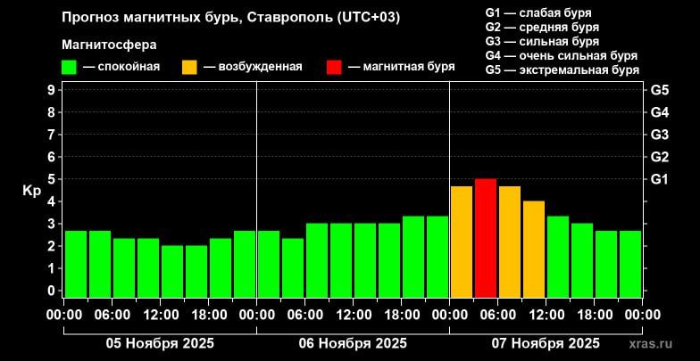 Первые колебания начнутся в полночь, а самый пик придется на раннее утро. После обеда, к счастью, наступит затишье.Всего в ноябре будет три магнитные бури. Геомагнитные возмущения уровня G1 ожидаются еще 25 и 26 ноября...