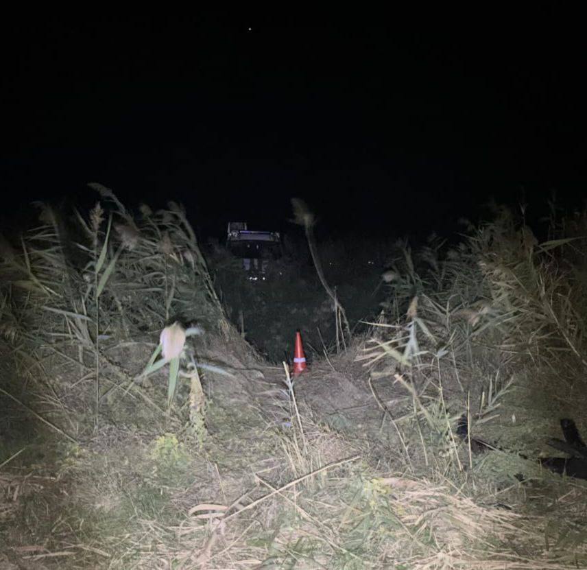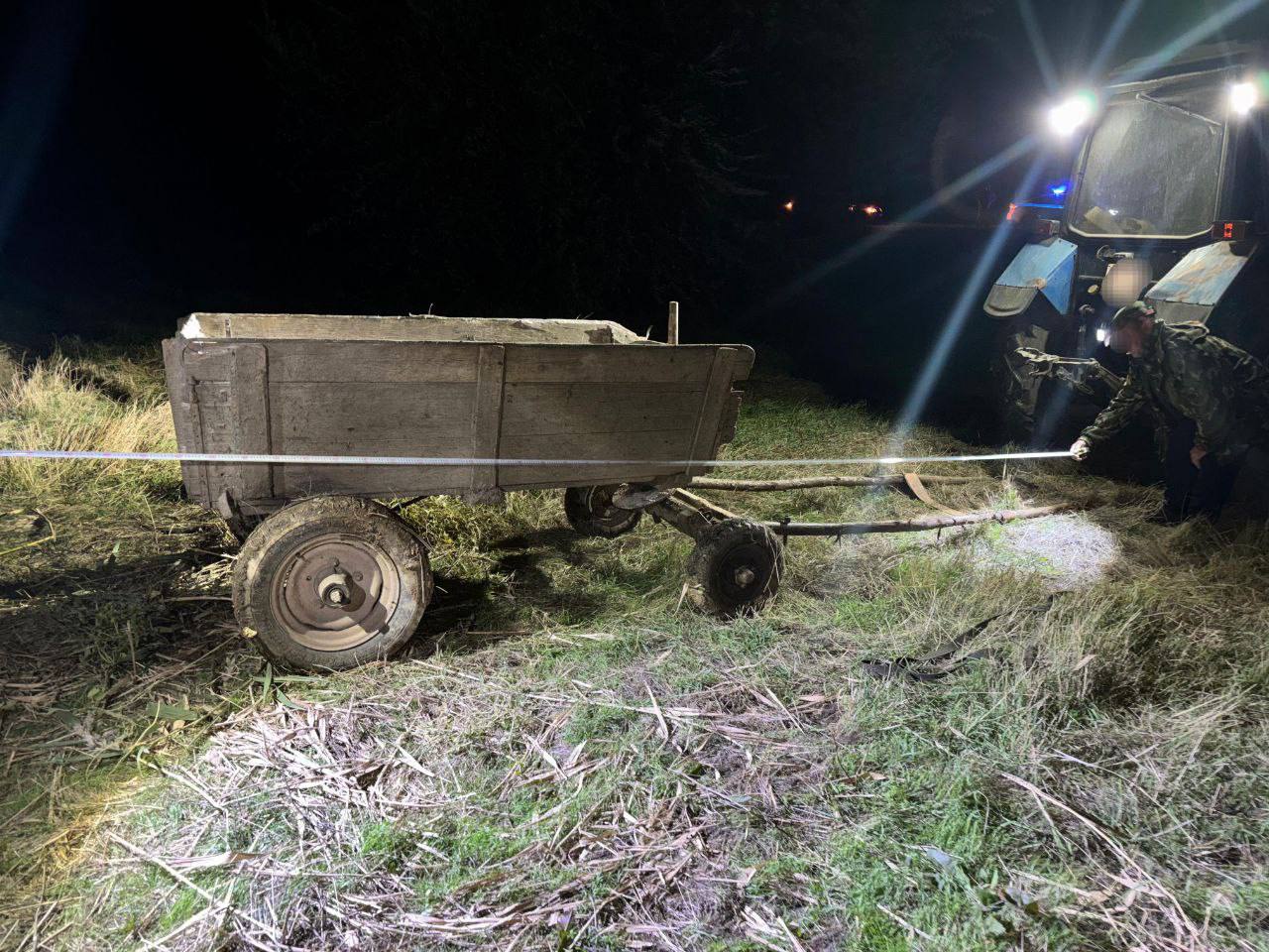 Он ехал вчера в 22:00 по грунтовой дороге и не справился с управлением. Повозка съехала в канал.