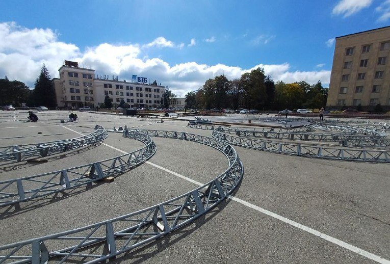 На площади Ленина приступили к возведению каркаса ледового катка. Об этом сообщили в городской администрации.