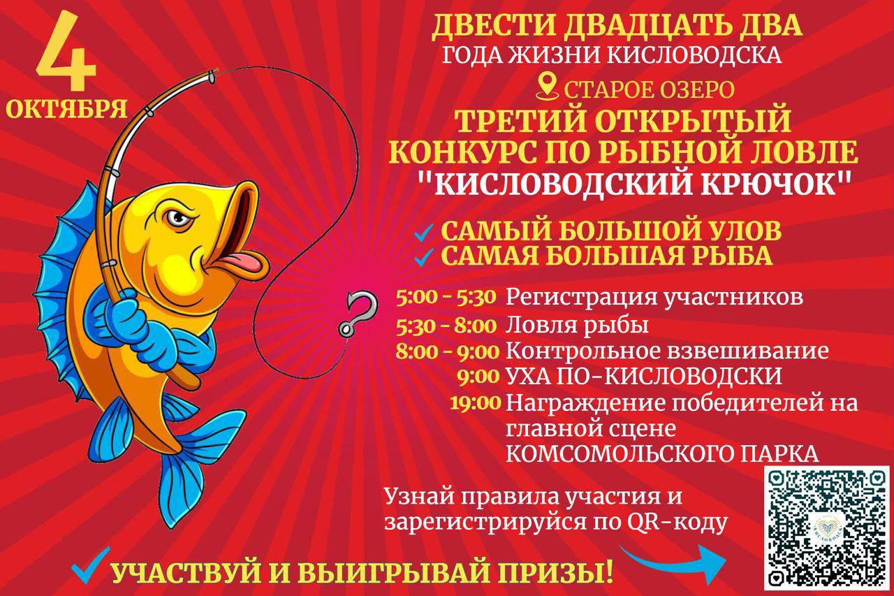 Завтра, 4 октября, приглашаем всех любителей порыбачить на наш уже третий открытый конкурс по рыбной ловле «Кисловодский крючок», с которого начнем празднование 222-летия города Кисловодска!