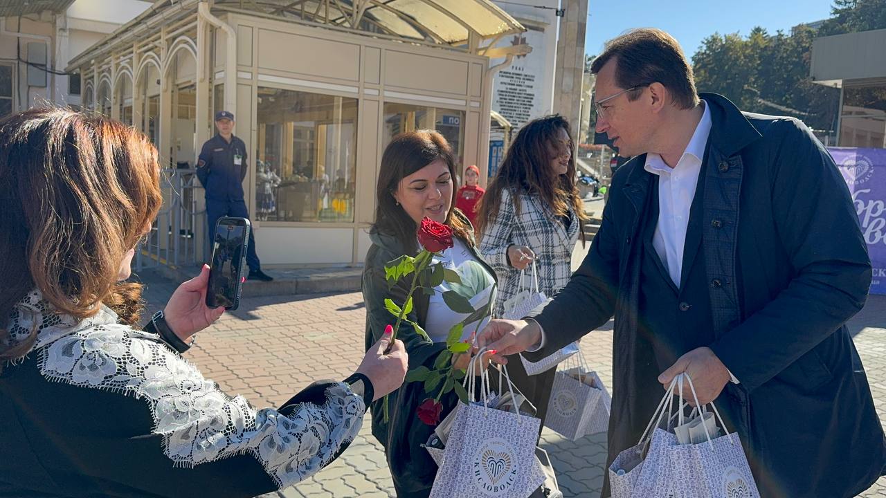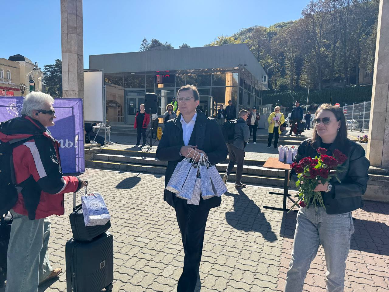 Сегодня Глава Кисловодска Евгений Моисеев, по уже сложившейся традиции, встретил гостей курорта с брендированными подарками на железнодорожном вокзале.