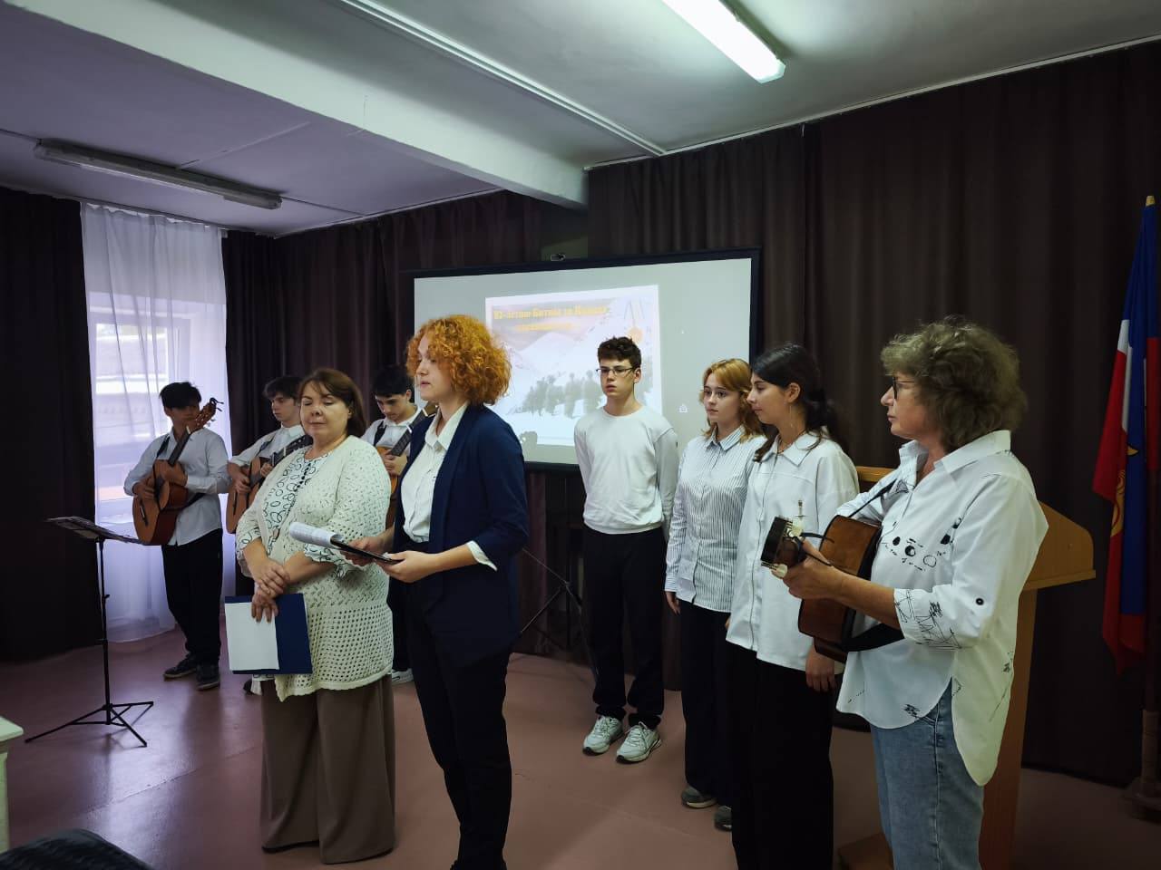 Ребята познакомились с основными вехами Битвы за Кавказ и услышали военные песни в исполнении ансамбля «Крокусы».