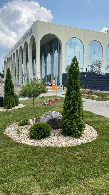 Продолжаем строительство сквера возле аэропорта им. А.В. Суворова. Здесь уже готовы пешеходные дорожки, обустроен автополив и проведено освещение, предусмотрено пространство для спокойного отдыха и детских игр. Уютную уличную мебель и тематическую игровую площадку будут окружать несколько сотен деревьев и кустарников. Уже скоро начнем высаживать молодые растения, а также обновим въездную группу топиарной композицией.
