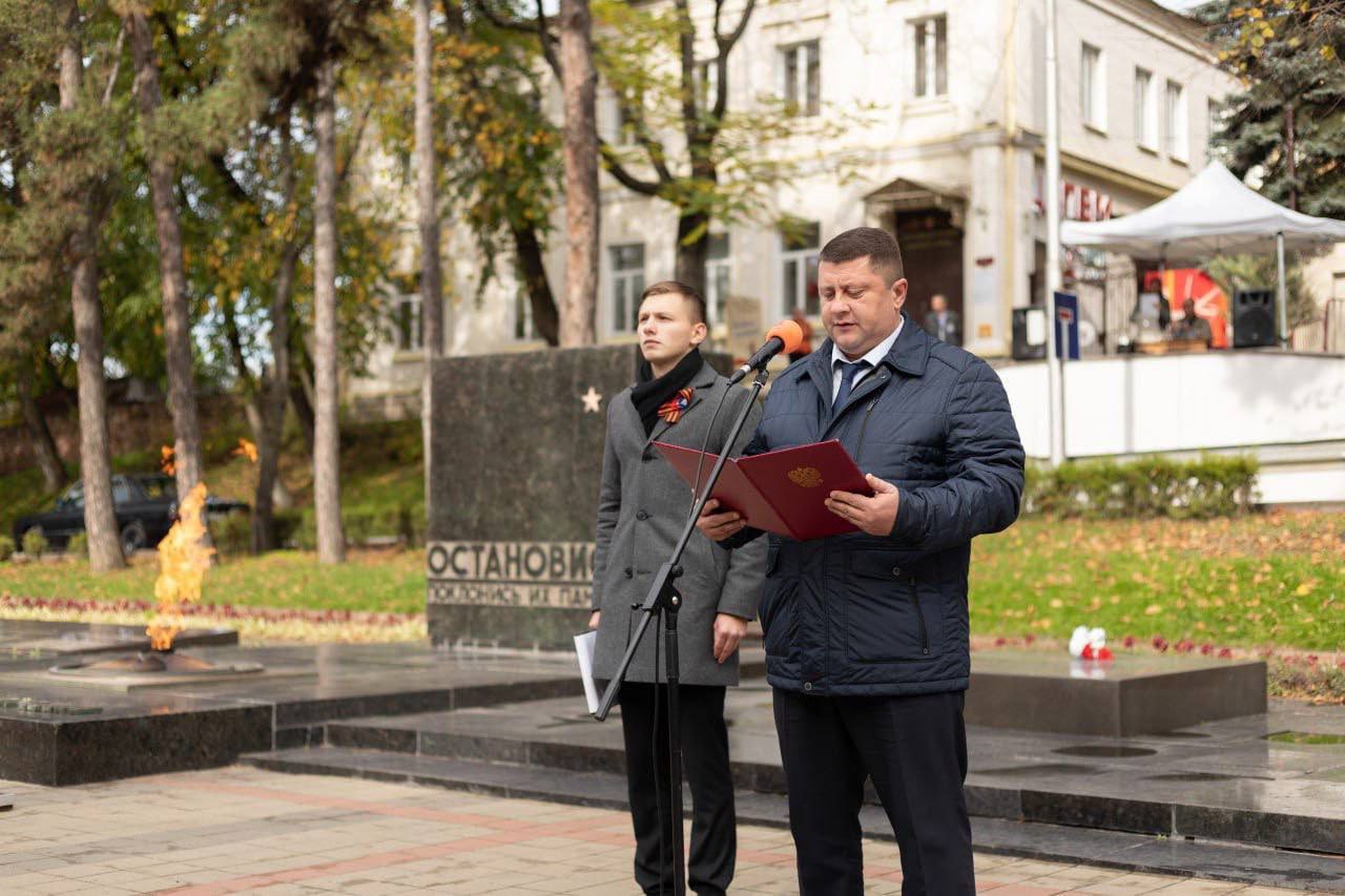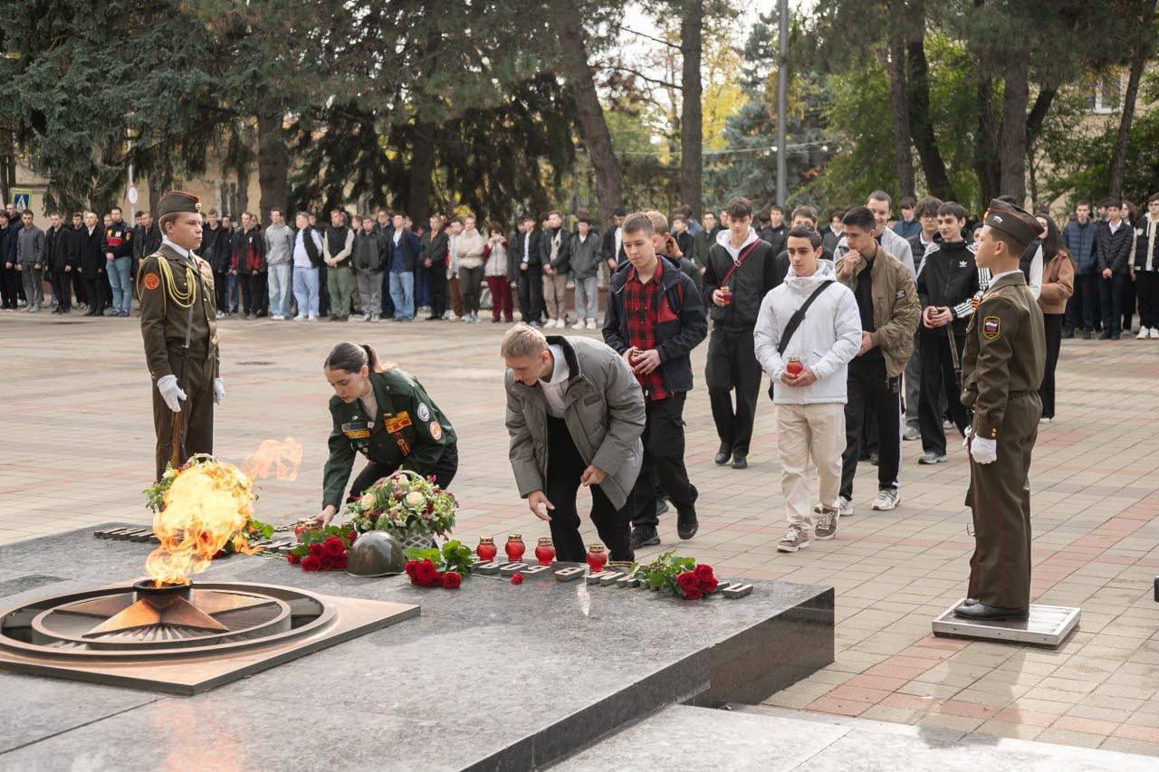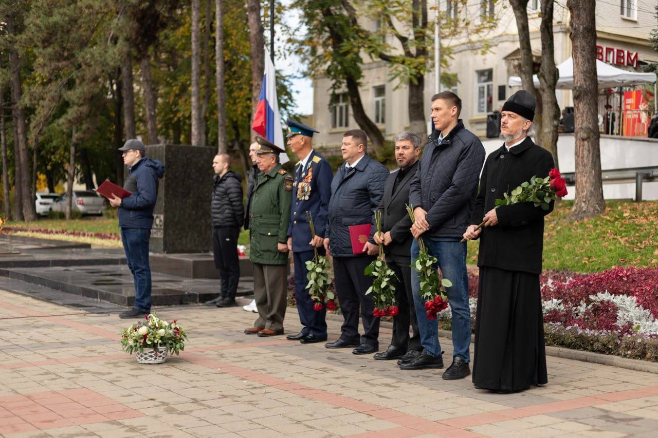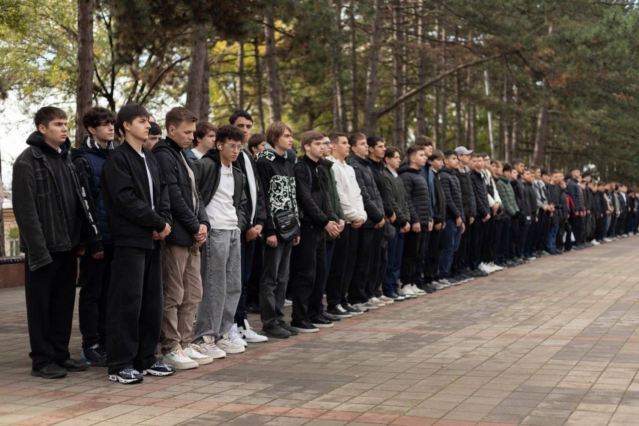Призывник из Пятигорска Дамир Шаповалов зачитал торжественное обещание перед жителями города и сослуживцами. Участники церемонии почтили память павших защитников Родины минутой молчания.