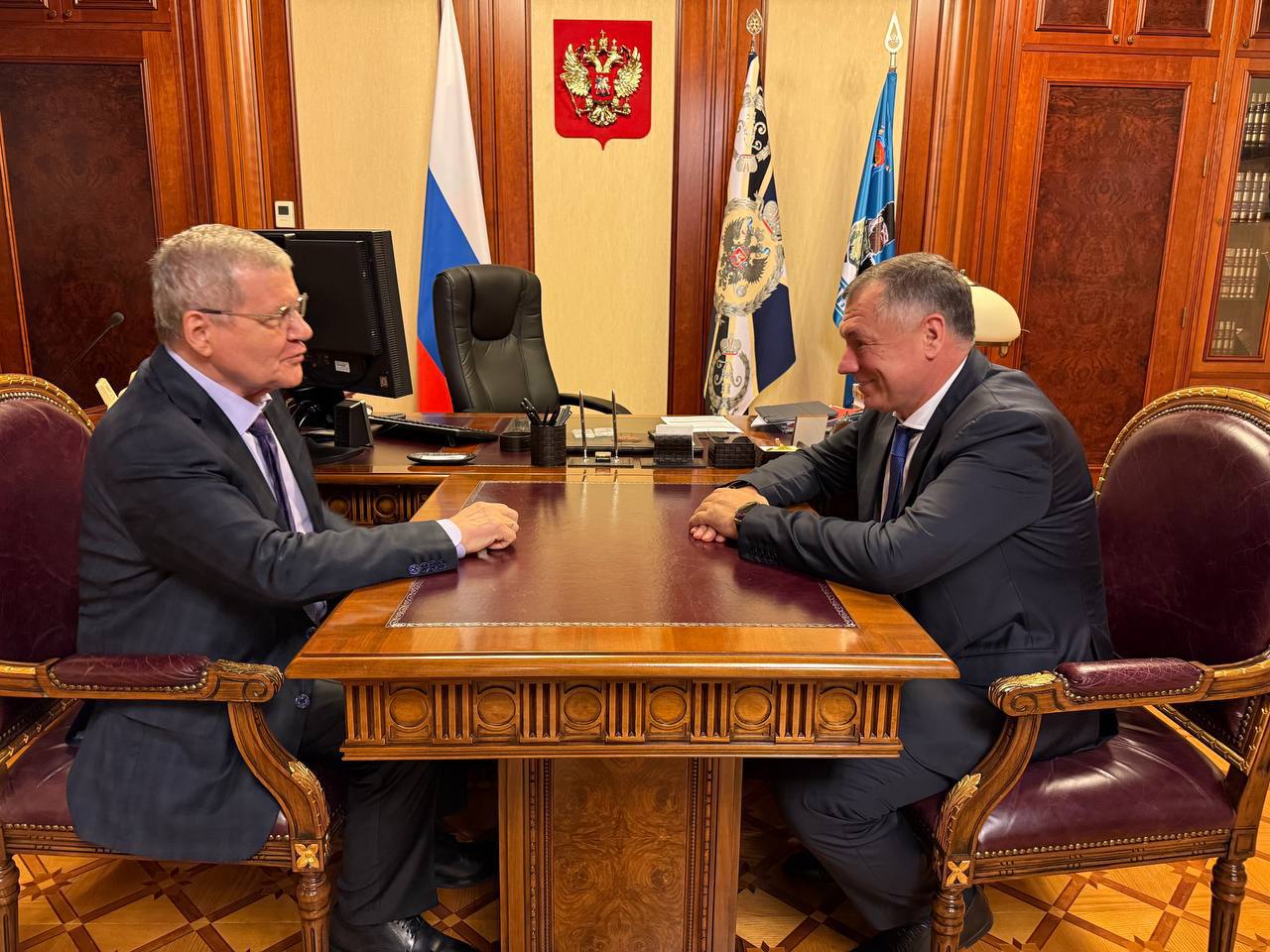 Также во время командировки в Ставропольский край провел рабочую встречу с полномочным представителем Президента РФ в Северо-Кавказском федеральном округе Юрием Яковлевичем Чайкой