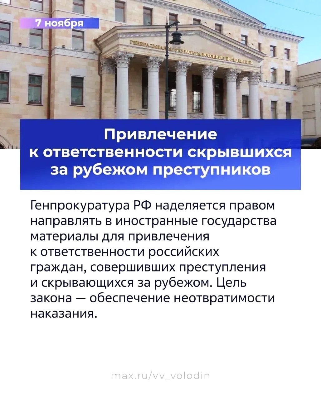 В целях обеспечения неотвратимости наказания Генпрокуратура РФ наделяется правом направлять в иностранные государства материалы для привлечения к ответственности российских граждан, совершивших преступления и скрывающихся за рубежом.