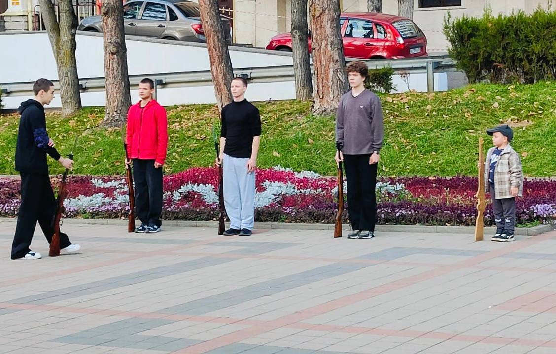 В строю можно заметить трогательную картину: рядом со старшим юнармейцем стоит его младший брат. Мальчик пока лишь повторяет движения, но в его старании уже видна будущая смена часовых.