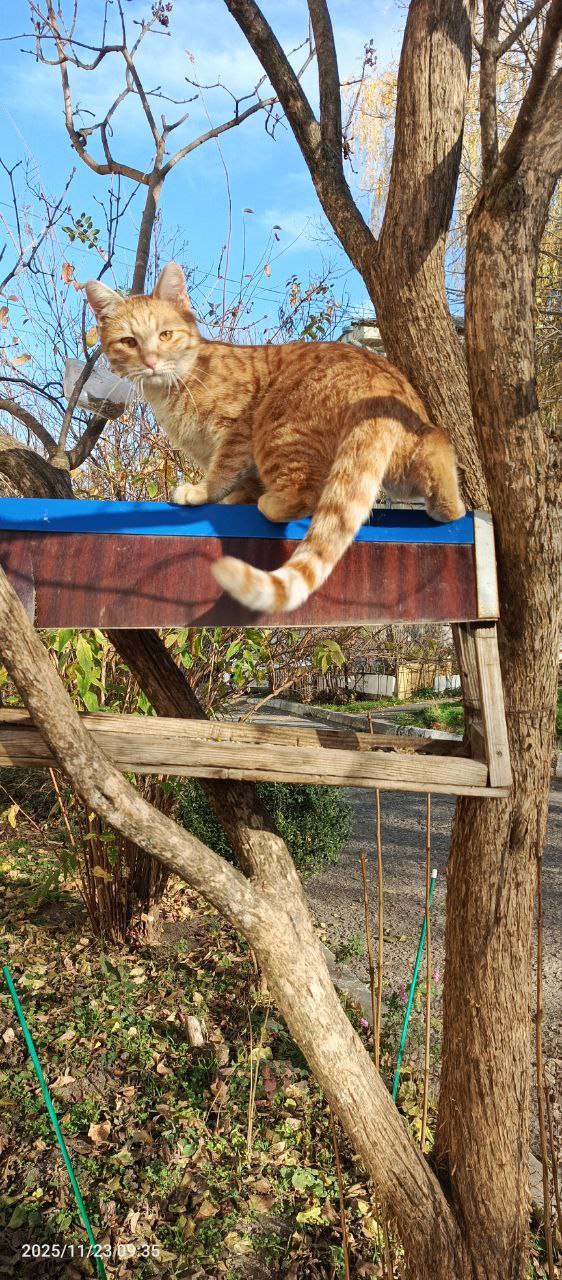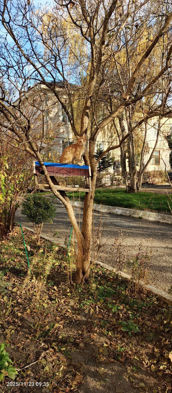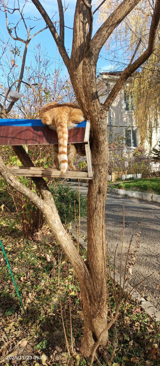 Мурзик с раннего утра инспектирует кормушки для птиц.