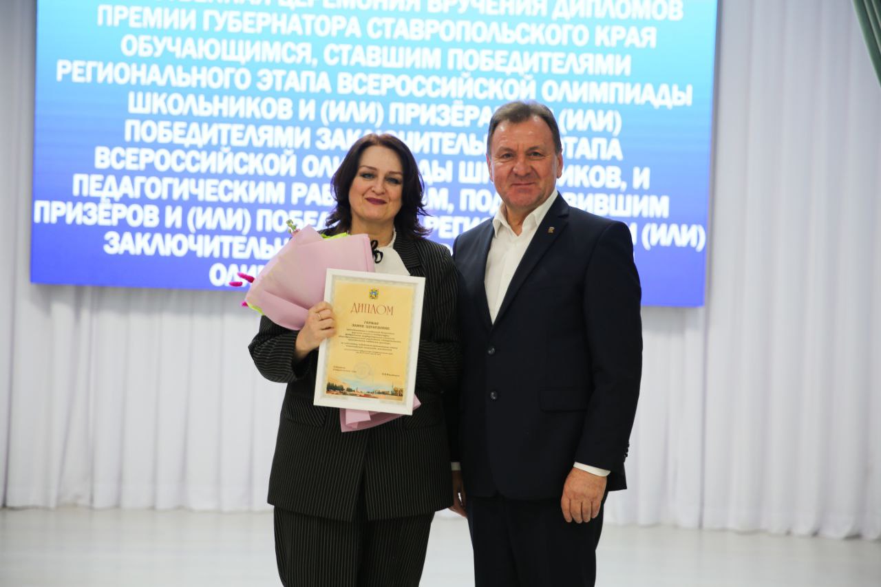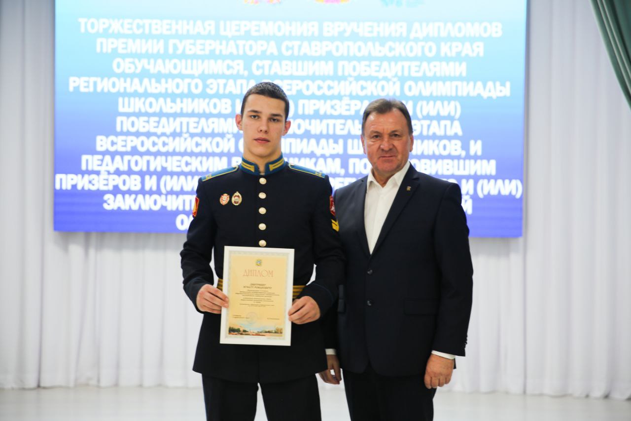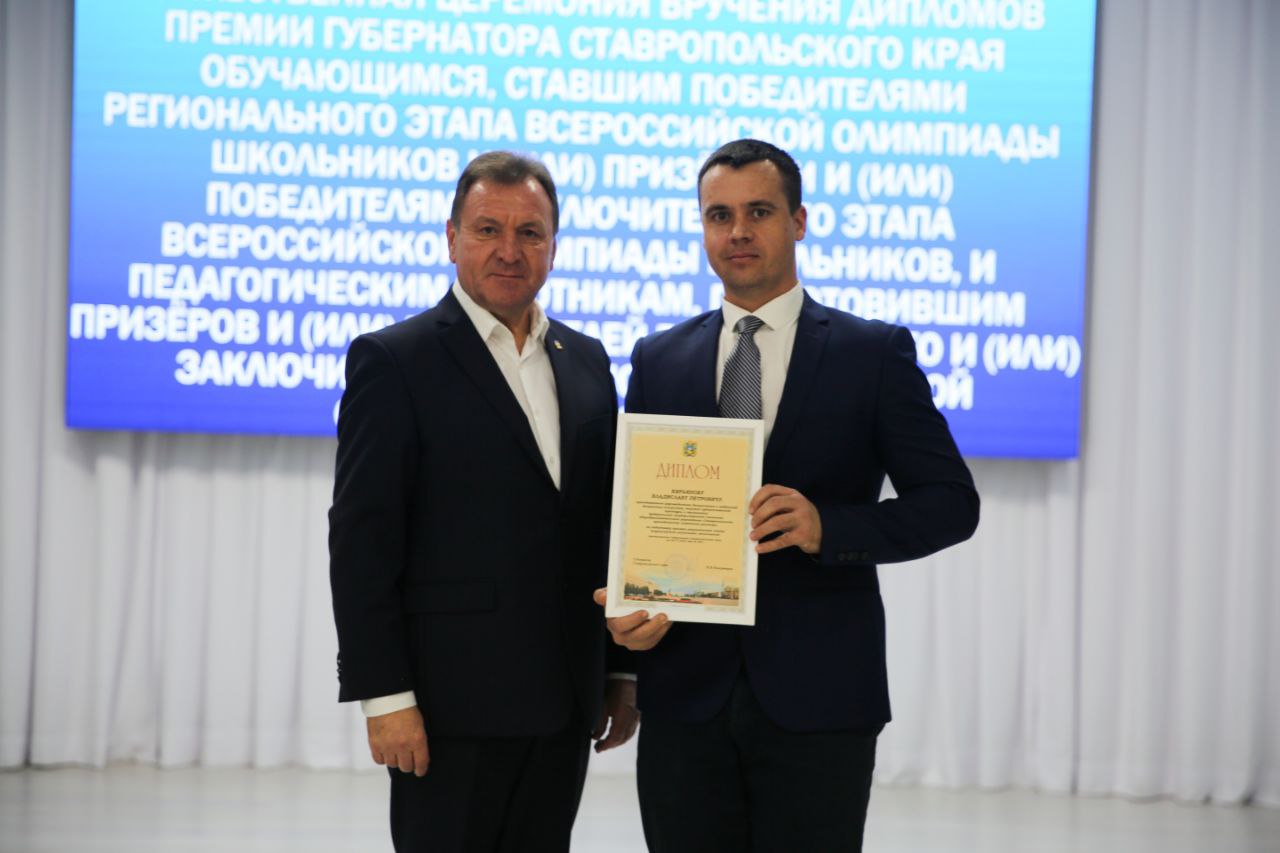 Нашим трудолюбивым и талантливым ребятам, ставшим победителями и призерами всероссийской олимпиады школьников, и педагогам, прекрасно подготовившим своих учеников, вручил дипломы премии губернатора Ставропольского края.