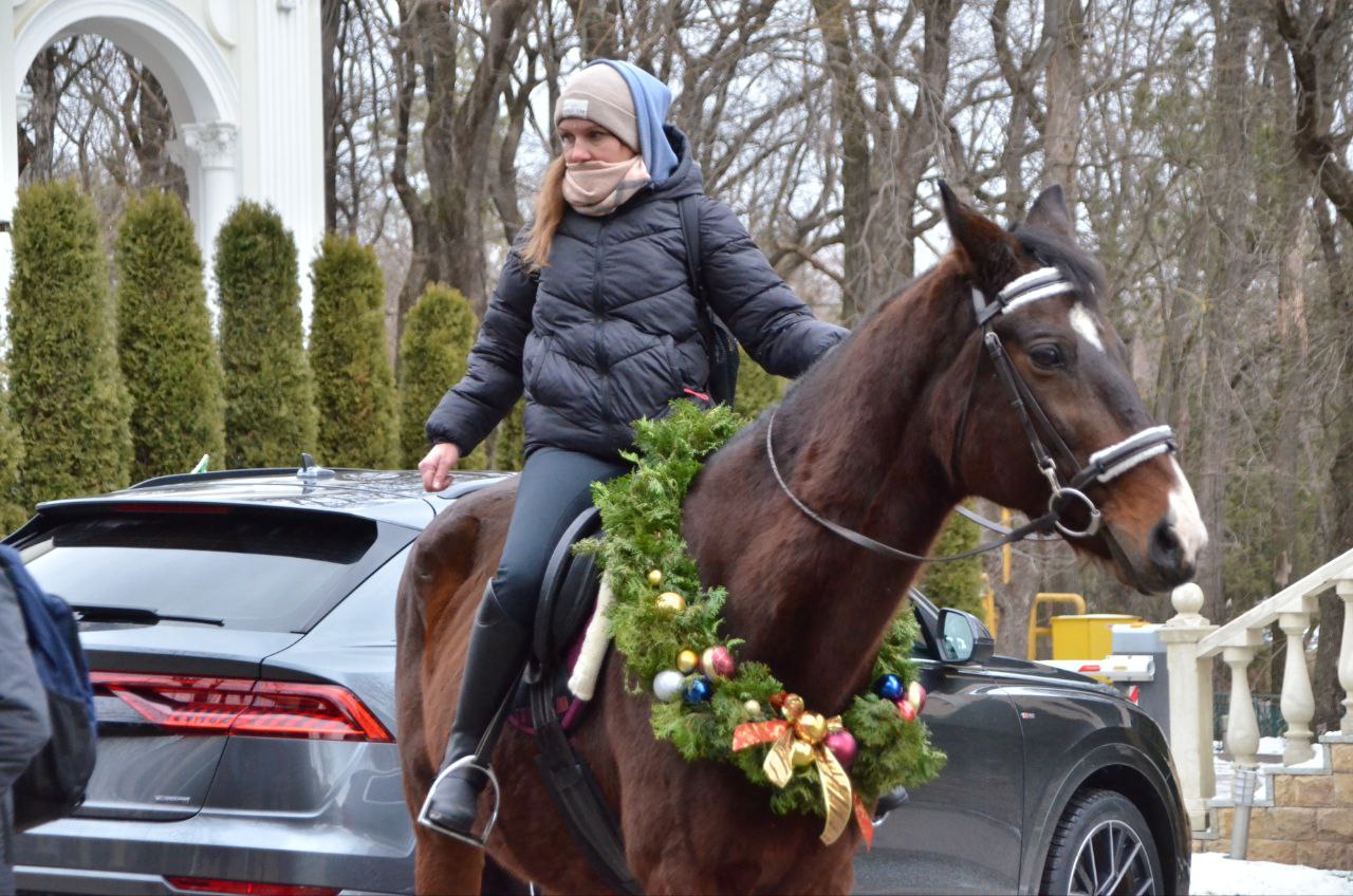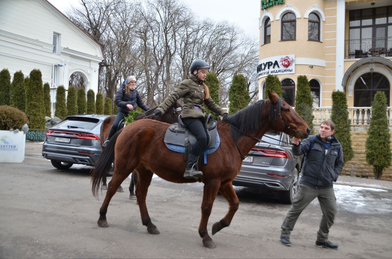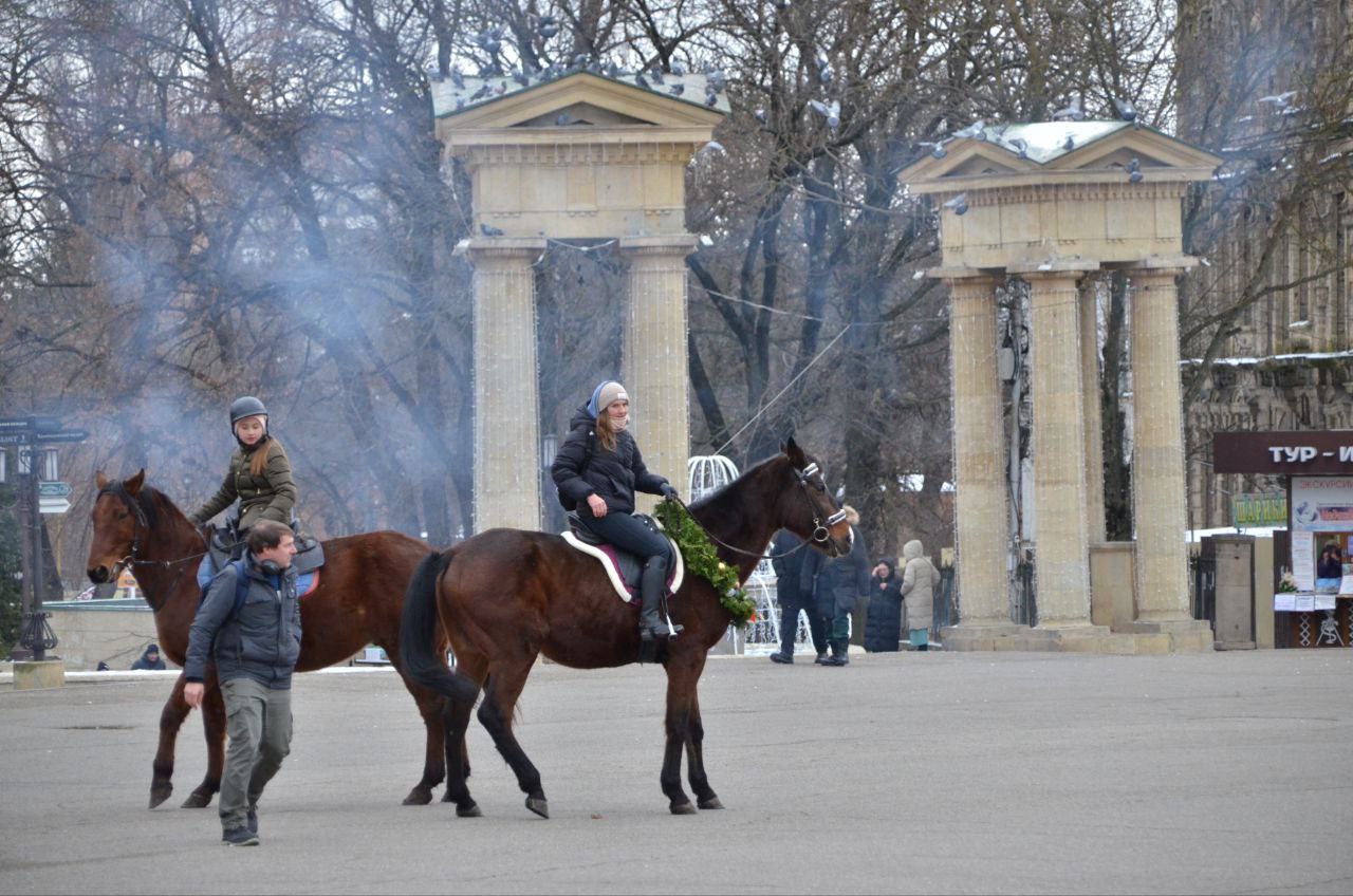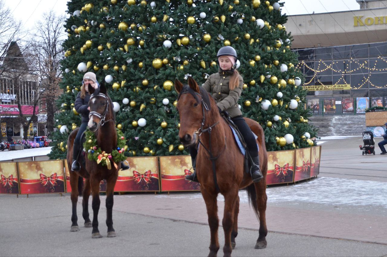 Присоединились к поздравлениям на Театральной площади ещё и всадники на лошадях.
