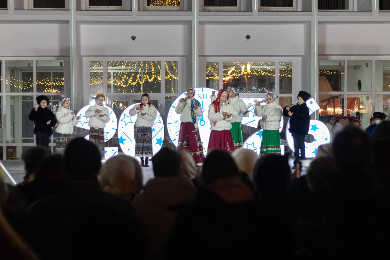 Сегодня на главной городской площади весь вечер звучали народные песни и святочные колядки, работали аттракционы, фотозоны и ярмарка. С повышенной нагрузкой трудилось и Ведомство Деда Мороза!