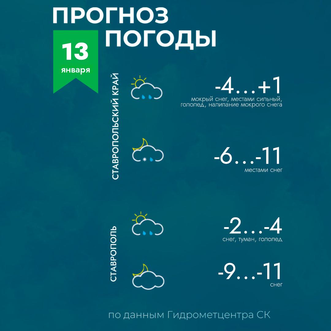 Сегодня днем в крае -4°...+1°, мокрый снег, местами сильный, туман, гололедно-изморозевые отложения, налипание мокрого снега. Ночью -6°...-11°, местами снег.