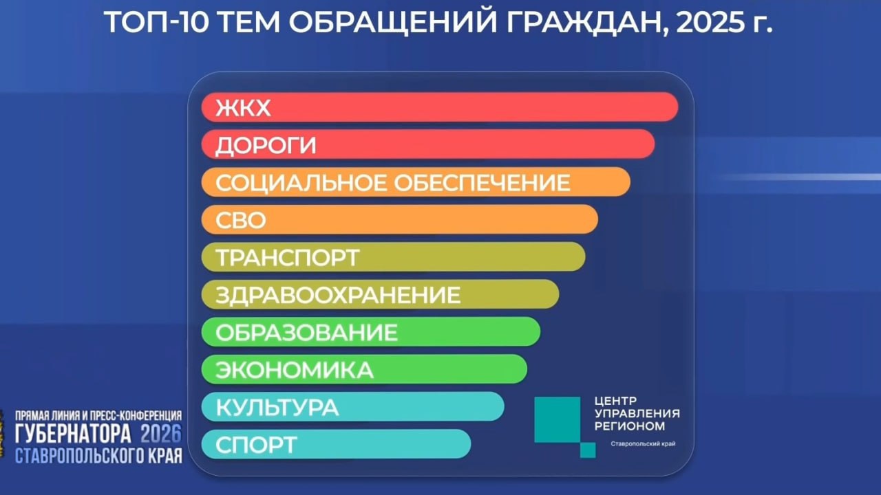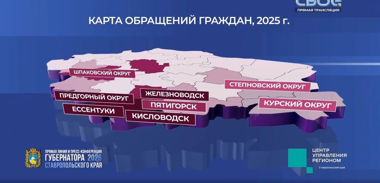 Больше всего сообщений поступило из Предгорного округа, Ессентуков, Железноводска и Кисловодска. Особенно ставропольчан волнуют вопросы ЖКХ, дорог, социального обеспечения и СВО.