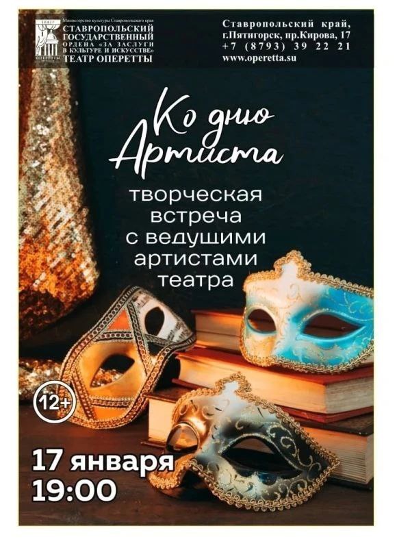 - В этом году День артиста отмечается в России впервые, - рассказали в театре. – Дата (17 января) выбрана не случайно, она совпадает с днем рождения создателя системы актерского мастерства – Константина Станиславского. В нашей программе прозвучат знаменитые арии из оперетт, любимые песни и романсы, а также вы узнаете истории из жизни артистов и нашего Пятигорского театра оперетты. Приглашаем всех, кто интересуется культурой, присоединиться к этому яркому событию!
