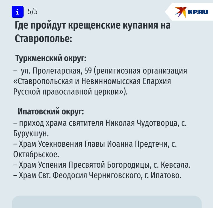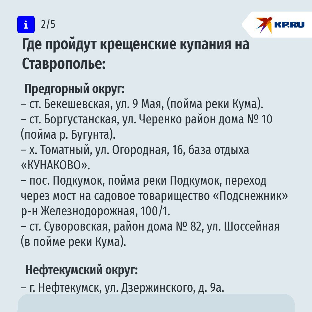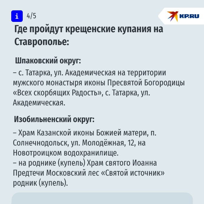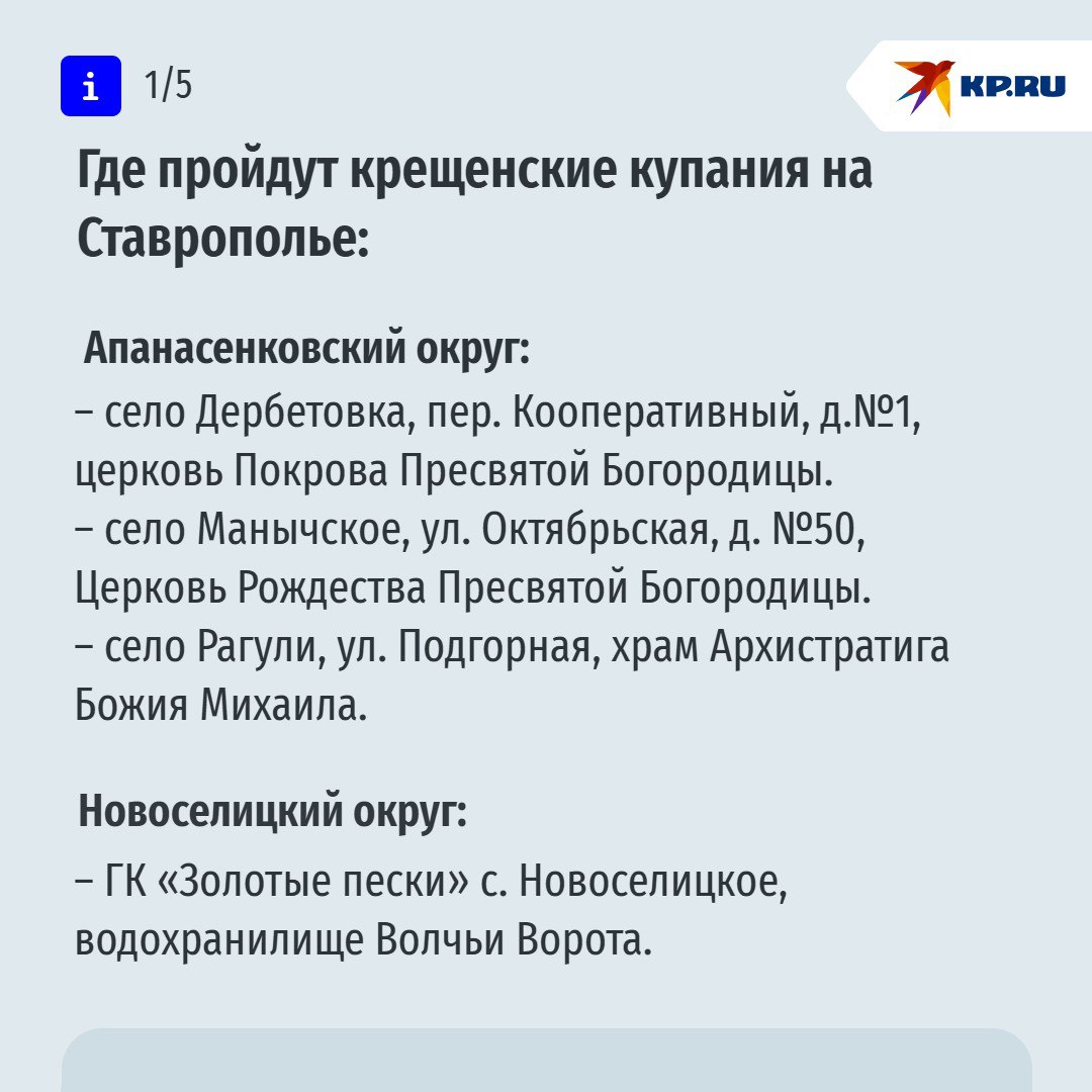 Где пройдут крещенские купания на Ставрополье