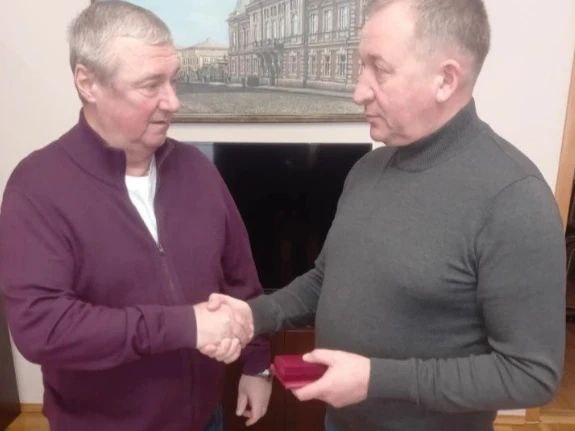 Александр Кузьмин вручил партийную медаль «За служение и доблесть» ставропольскому волонтеру Дмитрию Ляшенко, который уже больше трех лет привозит гуманитарную помощь бойцам СВО на линию боевого соприкосновения.