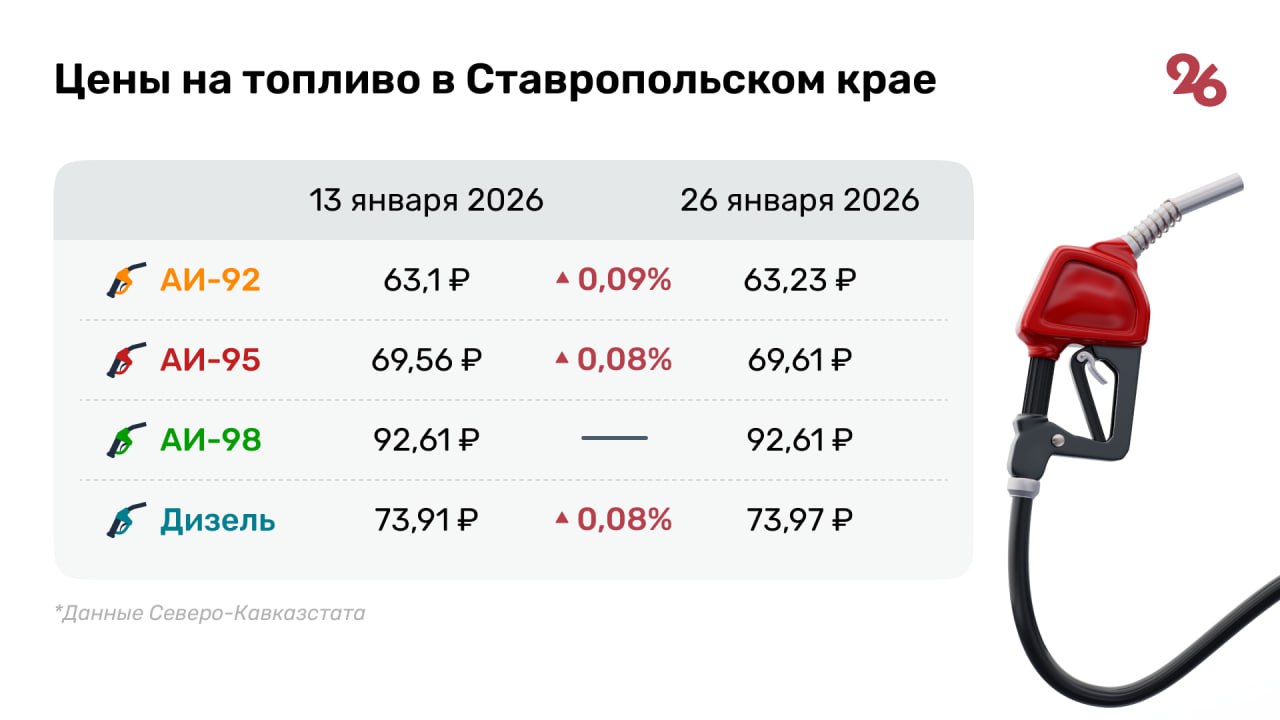 Бензин АИ-92 на Ставрополье подорожал до 63,2 рублей