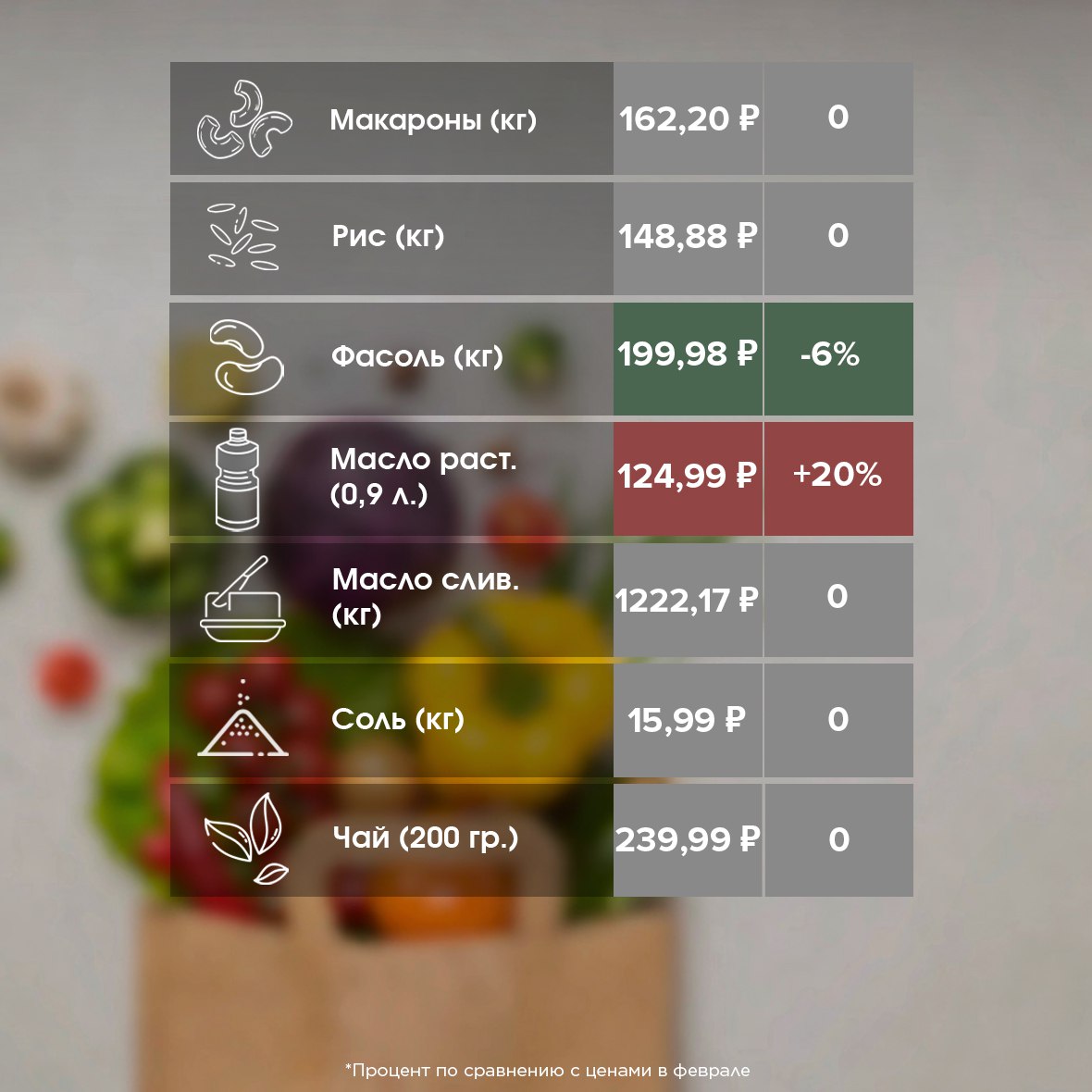 Как изменились цены на продукты в Ставрополе в марте?