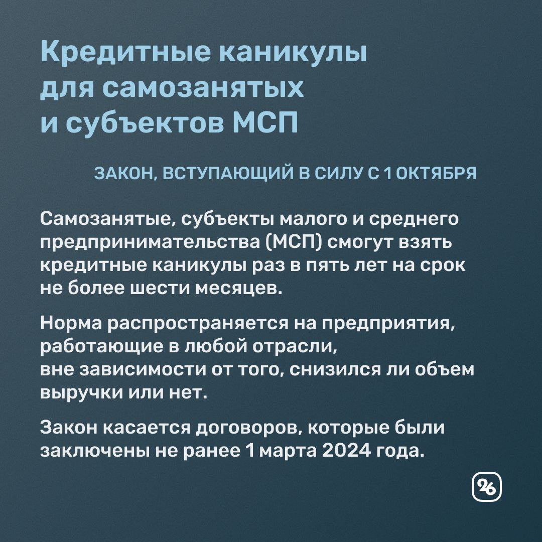 А самозанятые и представители МСП смогут оформить кредитные каникулы.