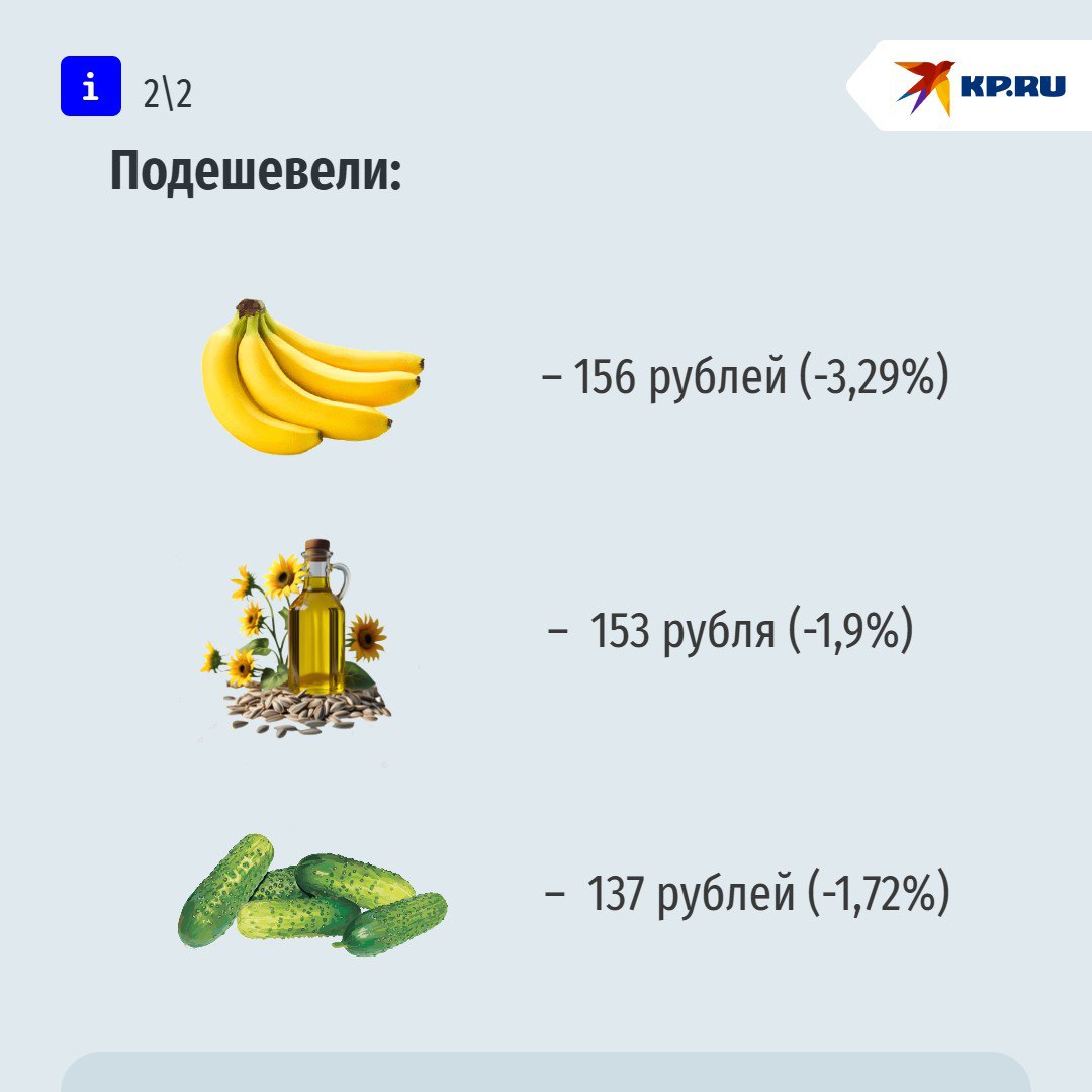 бананы – 156 рублей за кг (-3,29%),