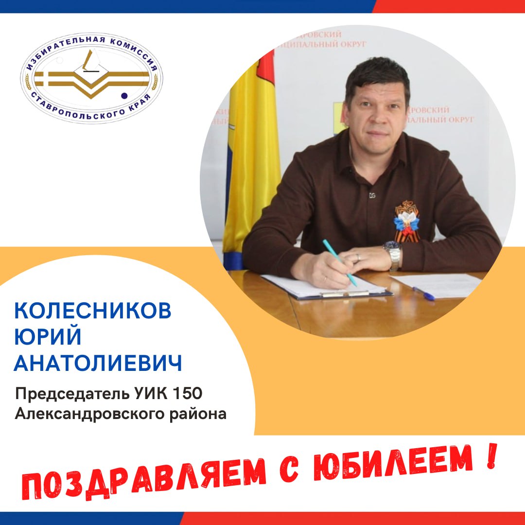 Сегодня свой юбилей празднует председатель УИК 150 Александровского района Колесников Юрий Анатолиевич.