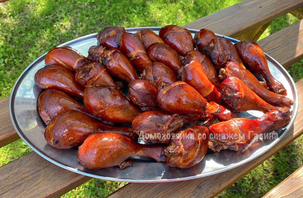 По завершении копчения куриные голени выкладываются на решетку для остывания. Очень важно, чтобы они не накрывались, иначе могут потерять хрустящую корочку.