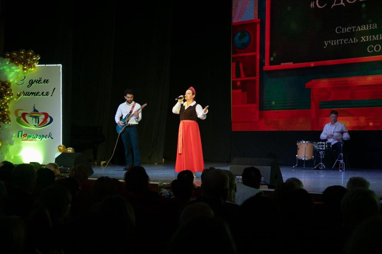 День учителя отметили в пятигорском Городском доме культуры. Здесь наградили лучших, поблагодарили за труд и терпение, вручили дипломы и благодарственные письма, ведомственные награды и отраслевые грамоты. А концерт, подготовленный не только профессиональными артистами, но и талантливыми школьниками, учителями и воспитателями, превратил официальное торжественное собрание в настоящий музыкальный праздник.