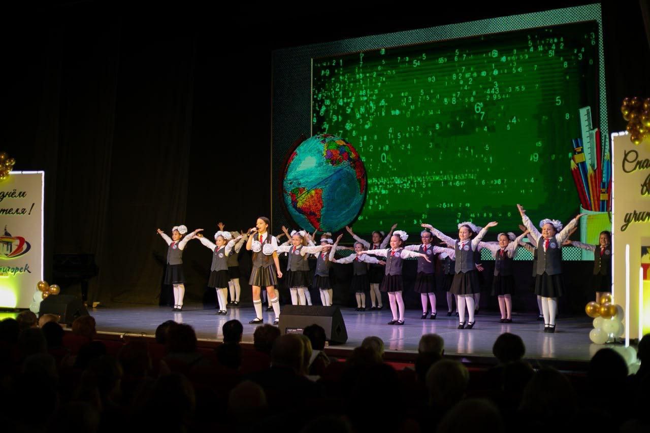 Концертная программа стала прекрасным подарком ко Дню учителя, причем с вокальными и танцевальными номерами выступили не только школьные творческие коллективы, студии Дворца детского творчества и ДК, но и сами педагоги. А еще учителей с профессиональным праздником поздравили артисты Ставропольского государственного театра оперетты!
